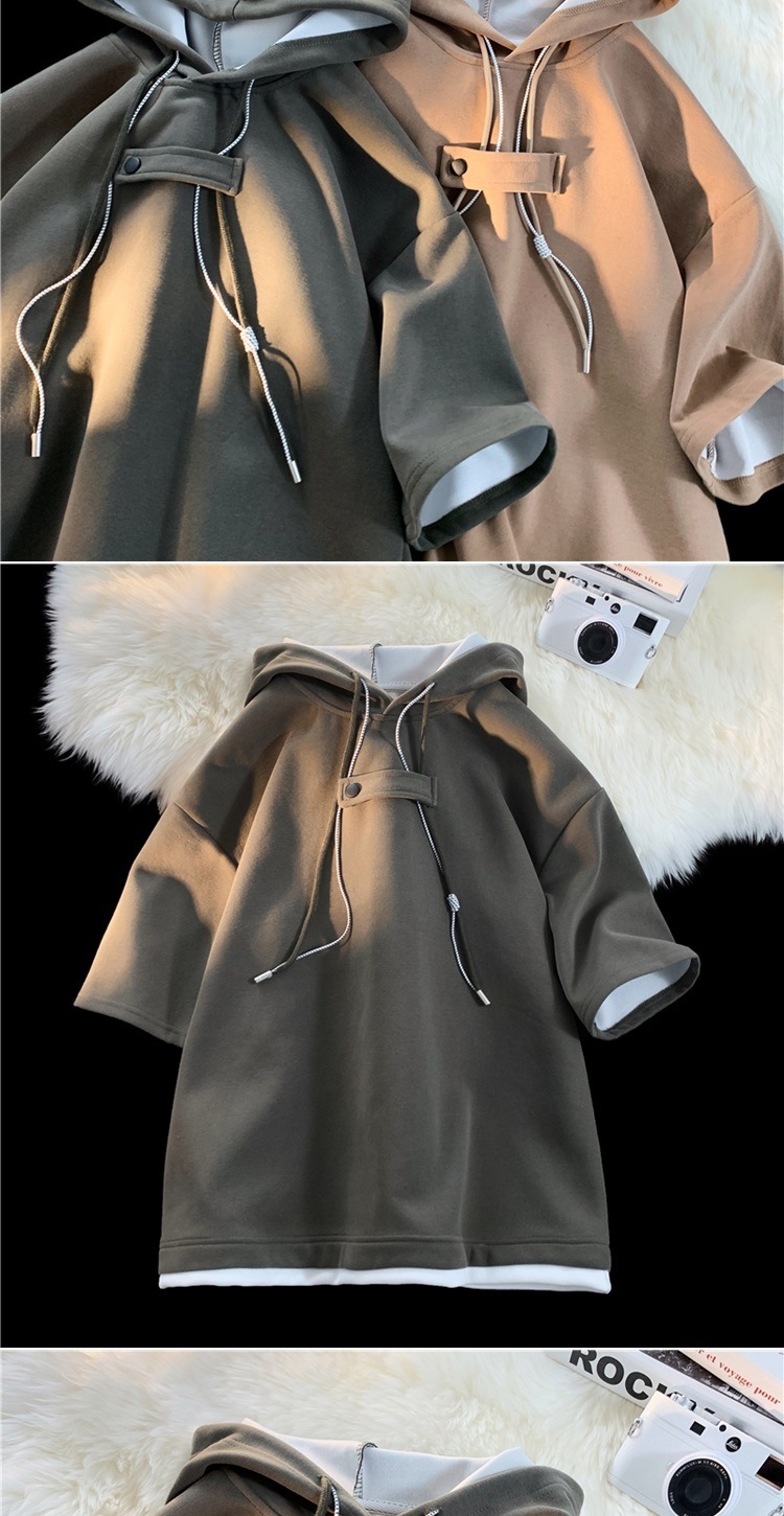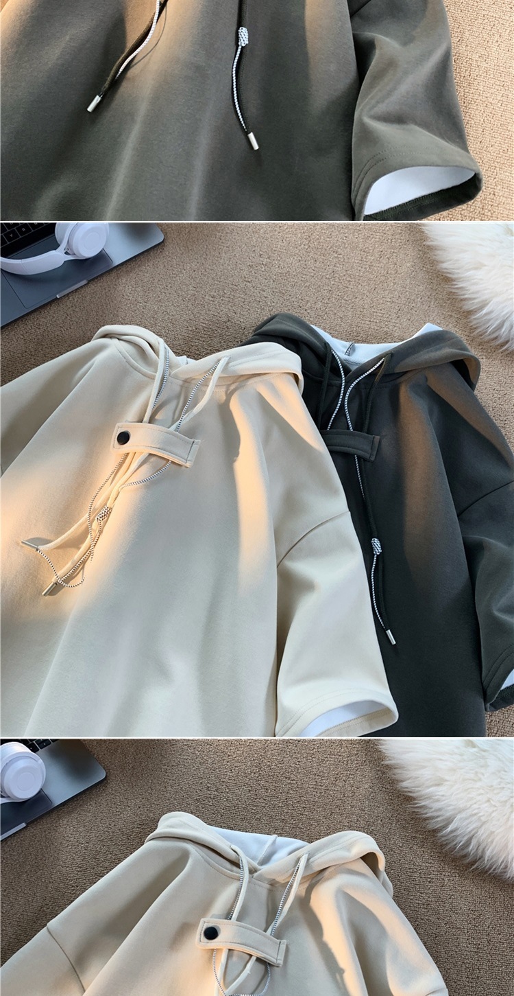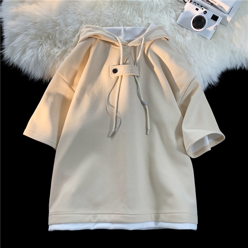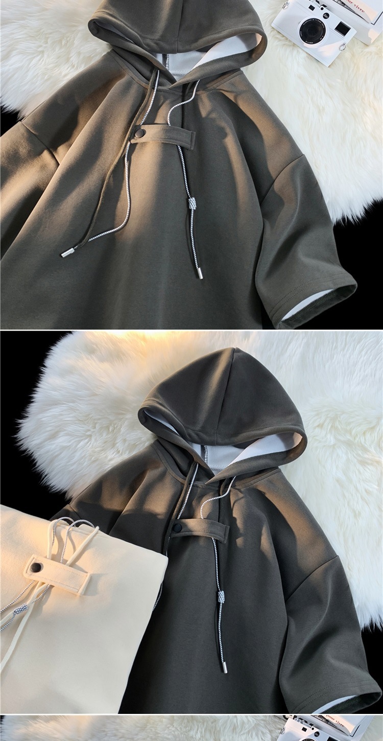 후드 티셔츠 남성 반팔 여름 얇은 느슨한 반소매 스웨터 아메리칸 인 패션 브랜드 올 매치 스포츠 캐주얼 탑
