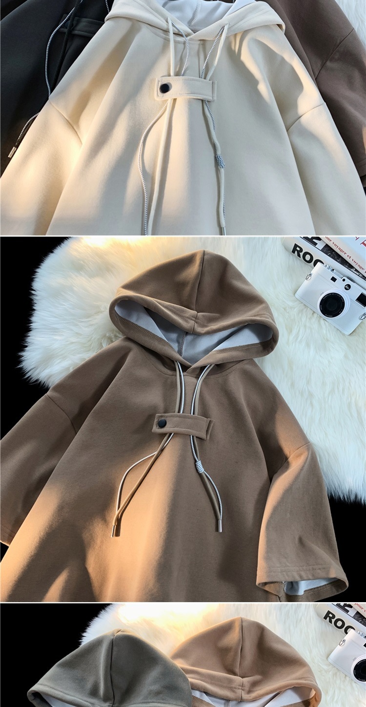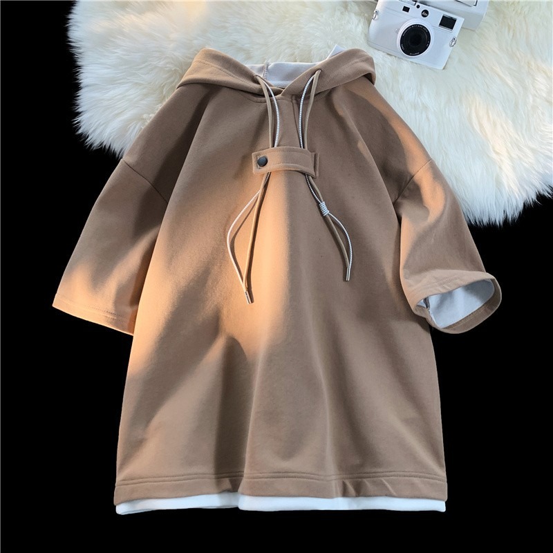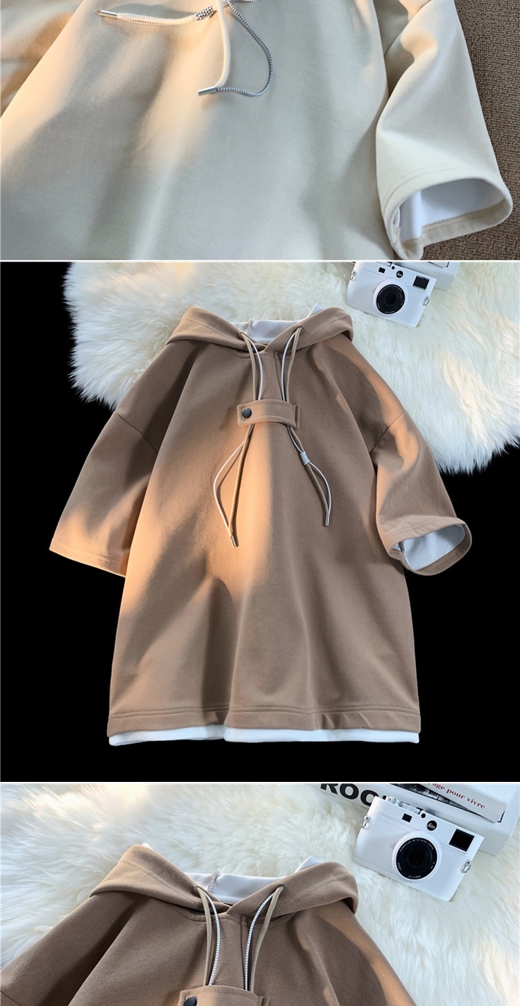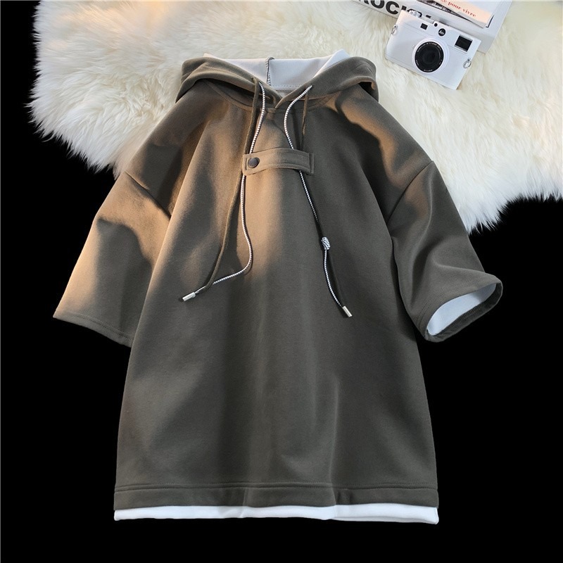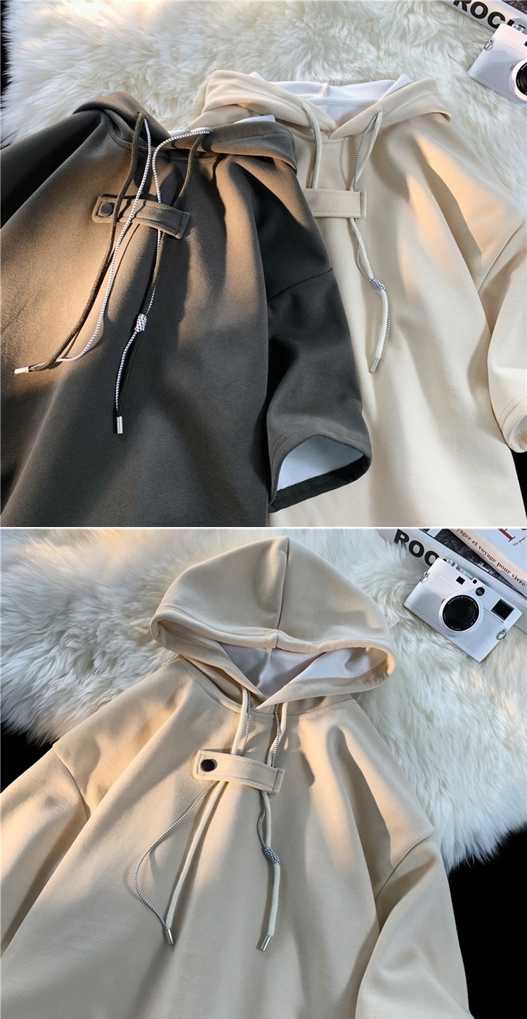 후드 티셔츠 남성 반팔 여름 얇은 느슨한 반소매 스웨터 아메리칸 인 패션 브랜드 올 매치 스포츠 캐주얼 탑