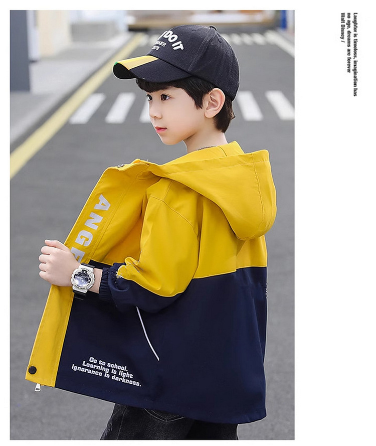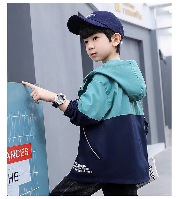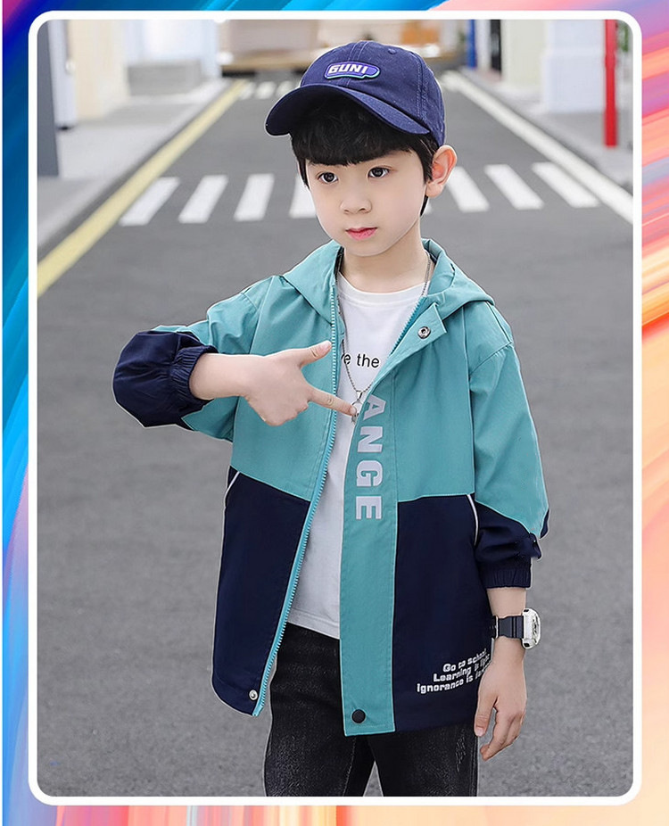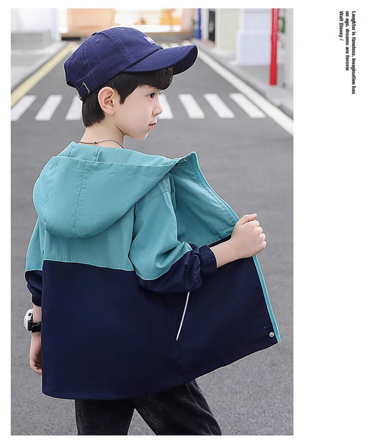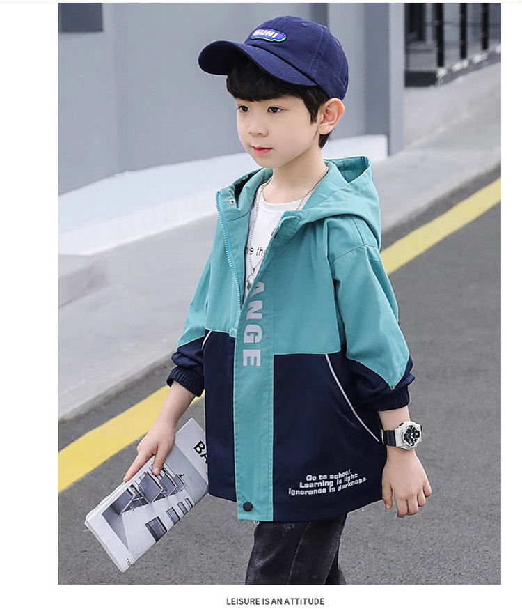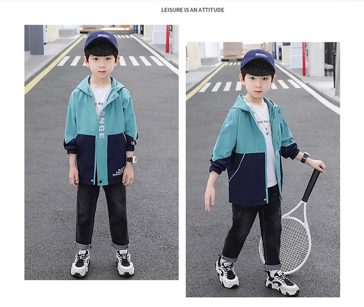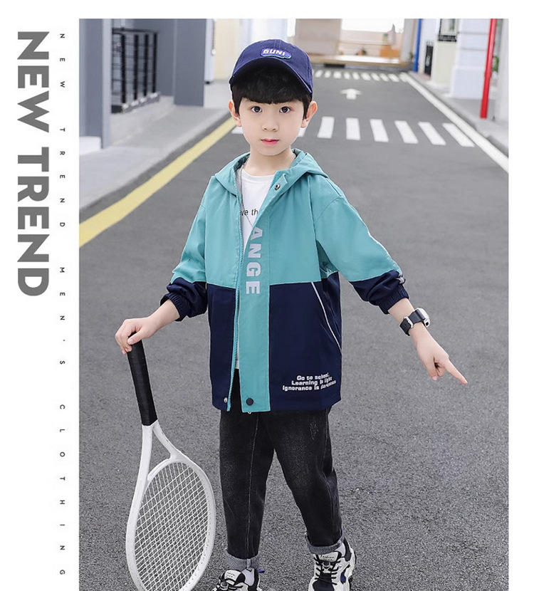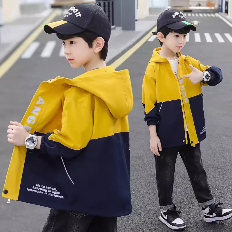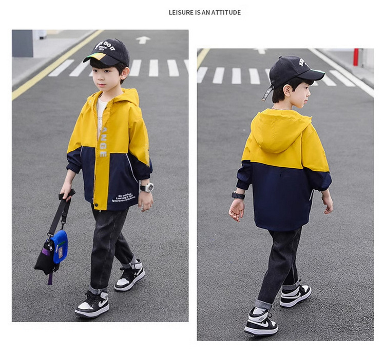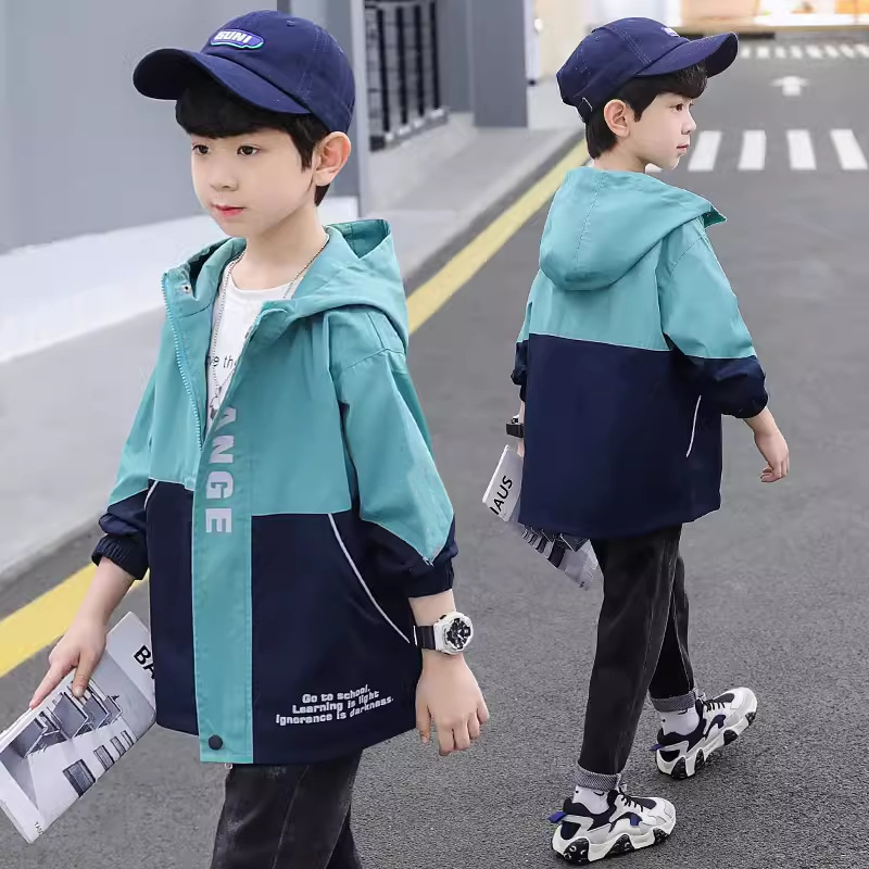 어린이 봄과 가을 코트 2024 한국식 새로운 캐주얼 서양식 소년 바느질 윈드 브레이커 미디어와 큰 어린이 얇은 코트스토어 가기