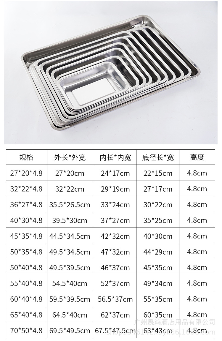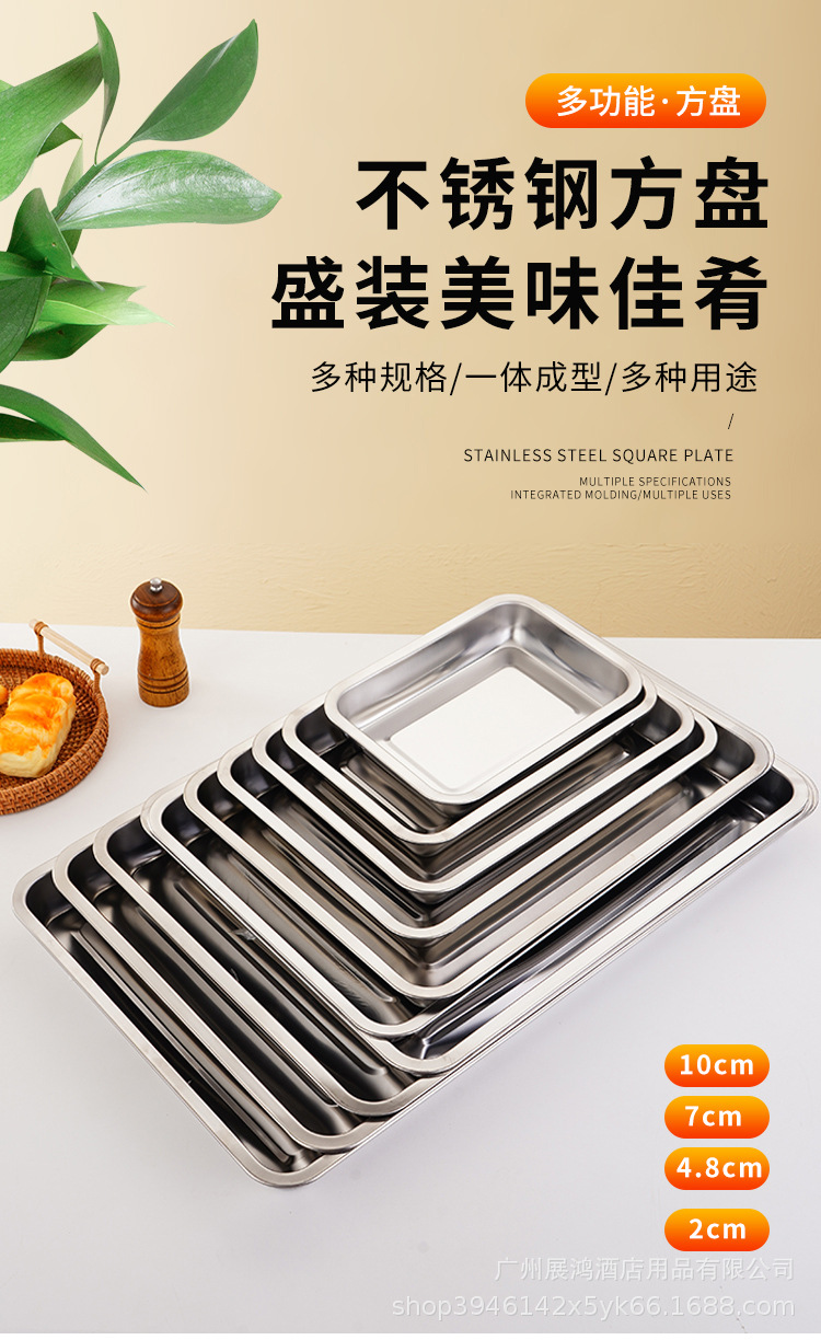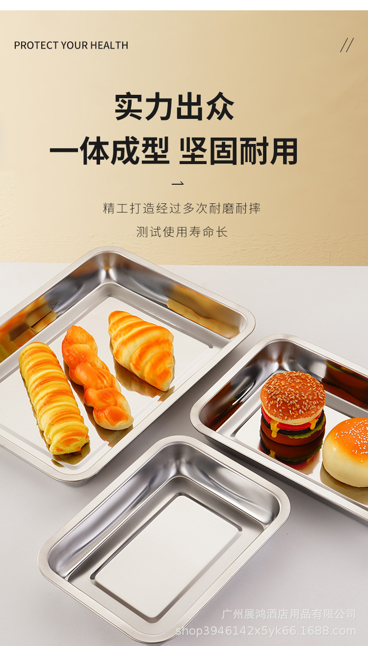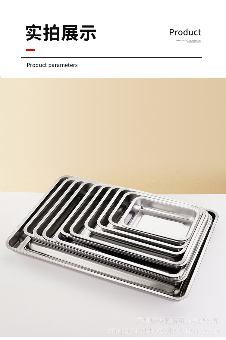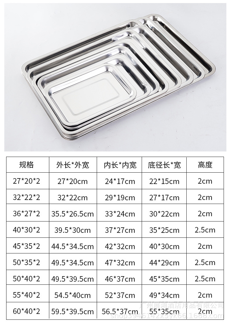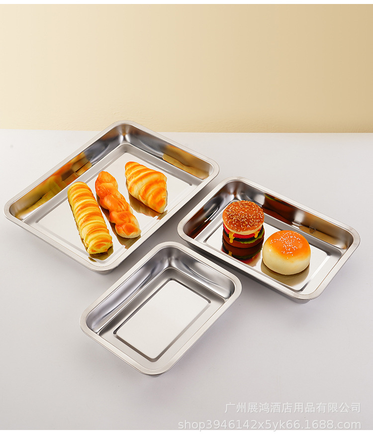 스테인레스 스틸 플레이트 비 자기 사각형 플레이트 직사각형 트레이 상업용 다목적 플레이트 만두 플레이트 레스토랑 김이 나는 접시 구이 생선 접시
