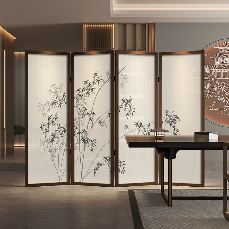 현대 새로운 중국 선 대나무 단단한 나무 접이식 화면 파티션 장식 거실 입구 작은 아파트 모바일 접이식 화면