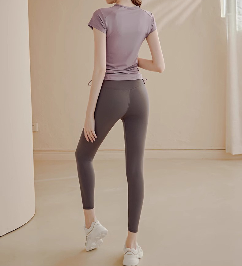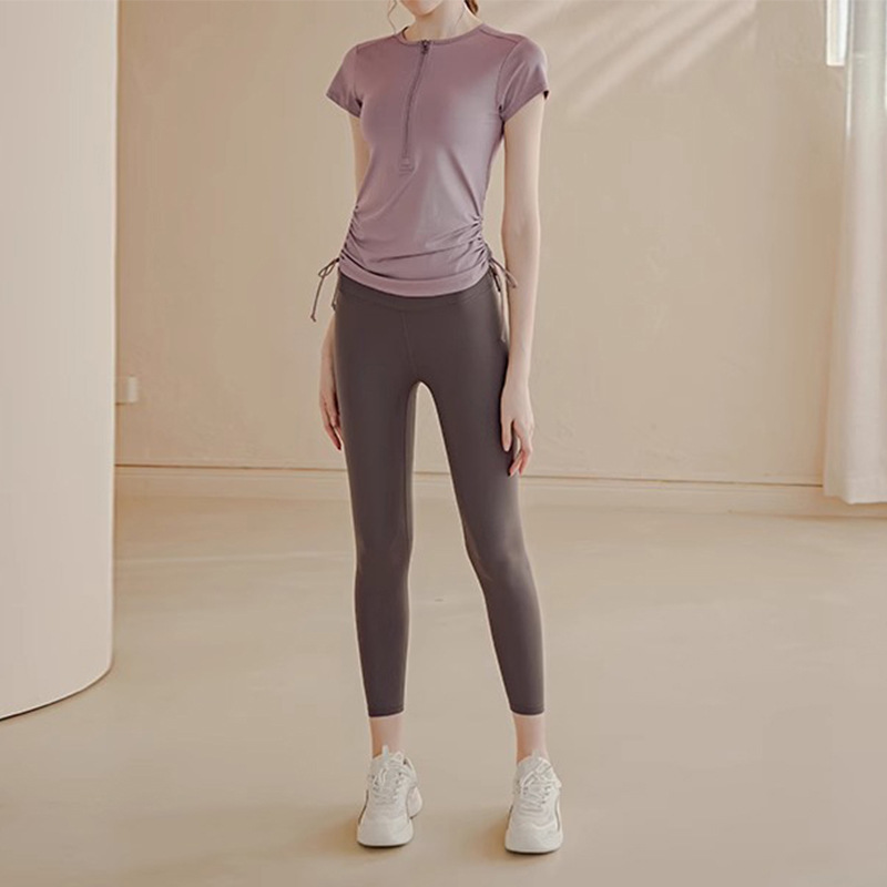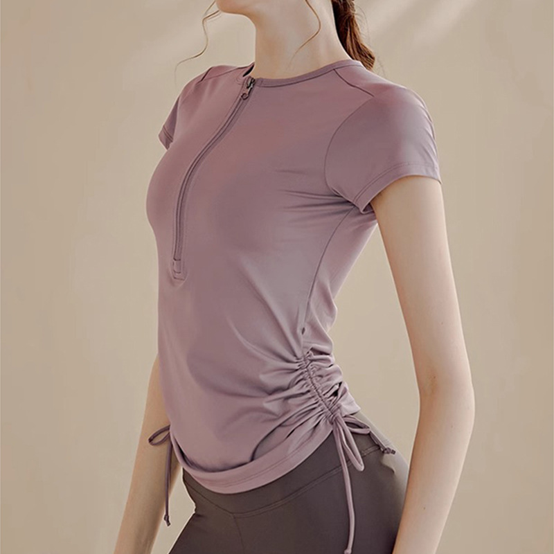 캐주얼 스포츠 요가 반팔 최고 여성 여름 얇은 드로 스트링 스트랩 반 지퍼 스트레치 바디 성형 달리기 운동 복