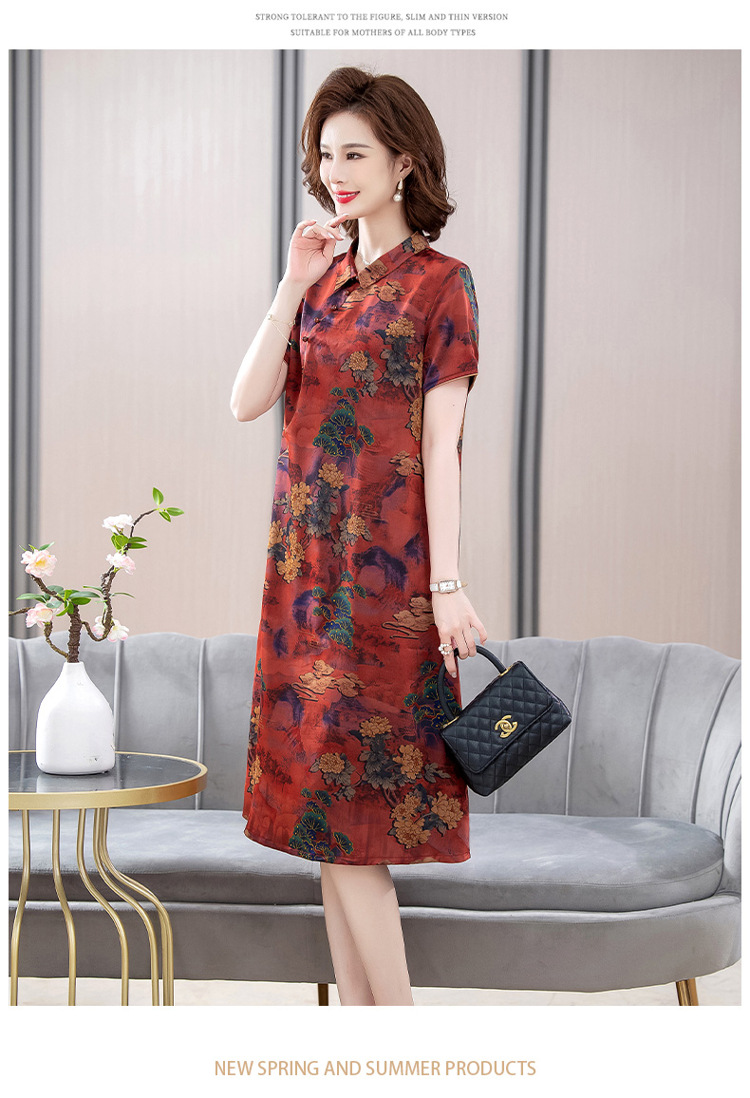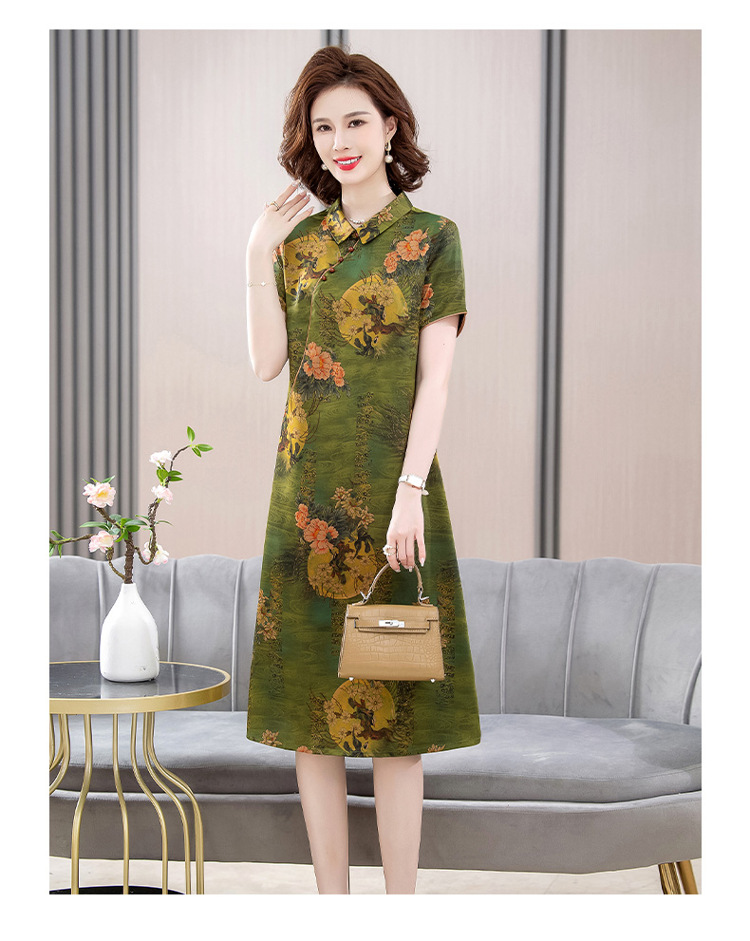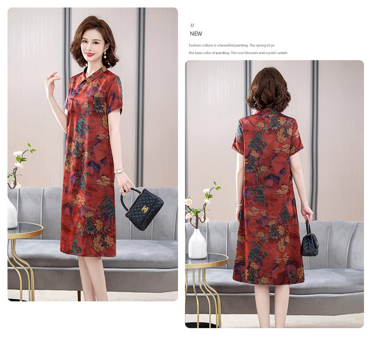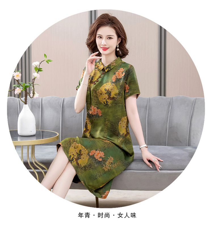 2024 중년 · 노인 산모 실크 샹윤 원사 원피스 신형 치파뽕나무 실크 귀족 서양식 중년 원피스스토어 가기