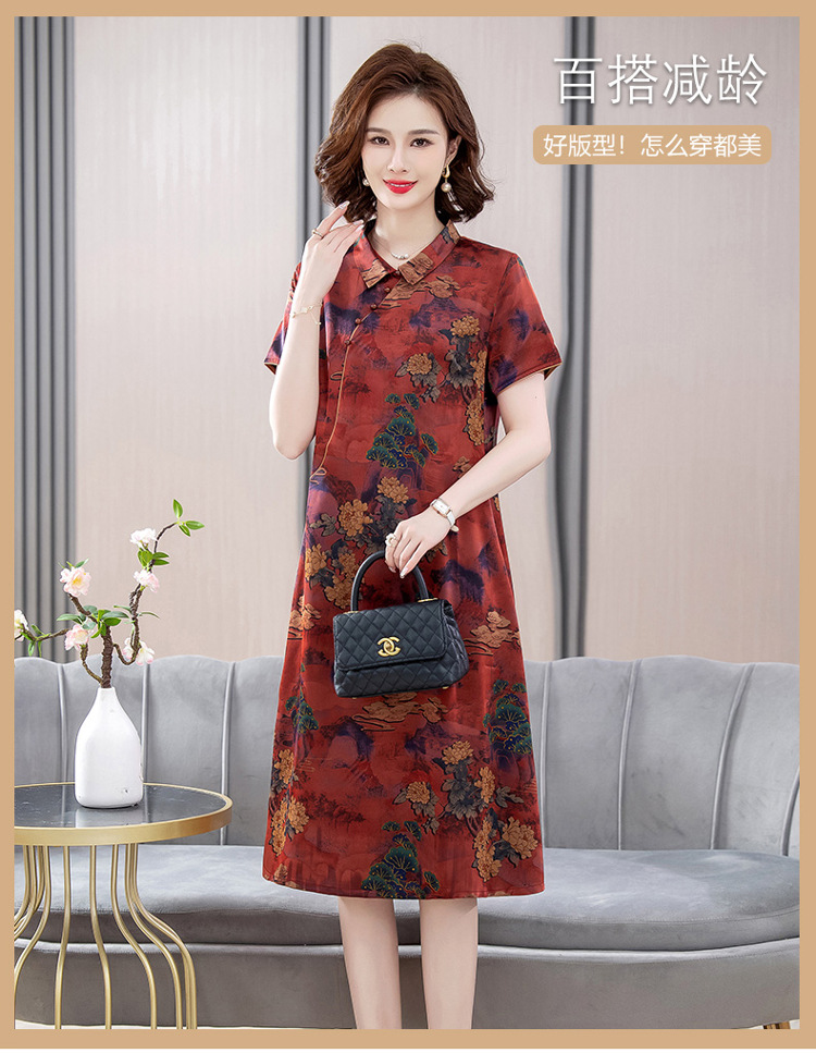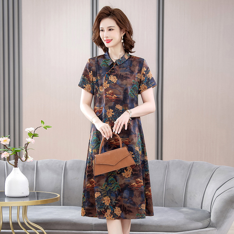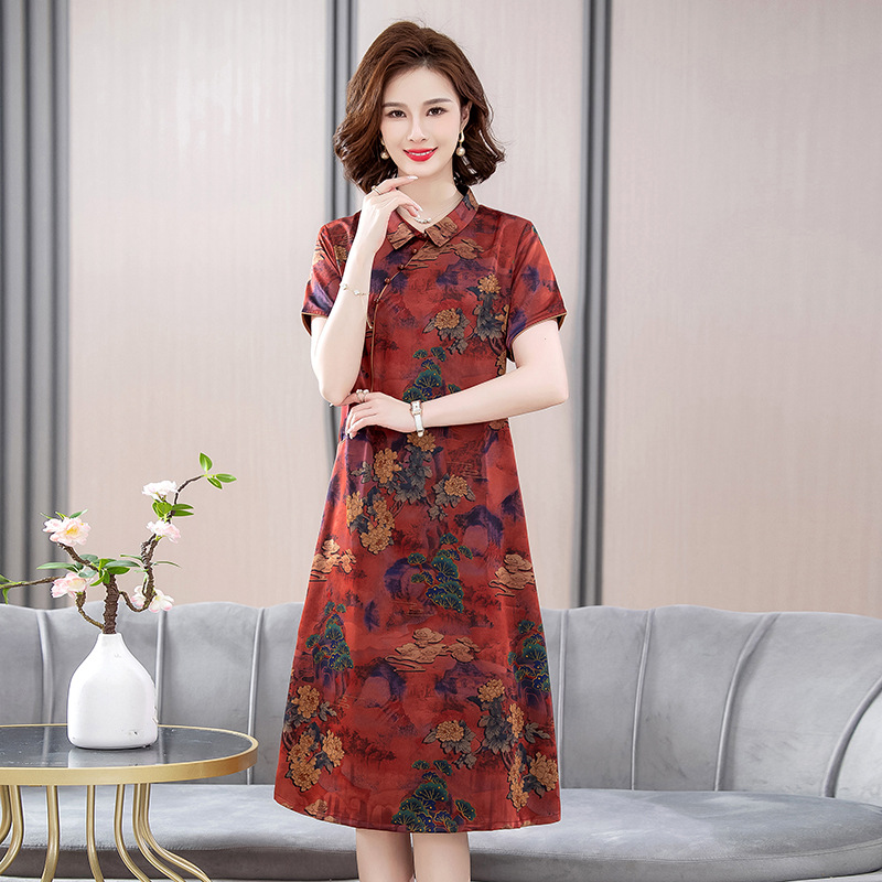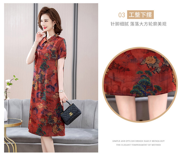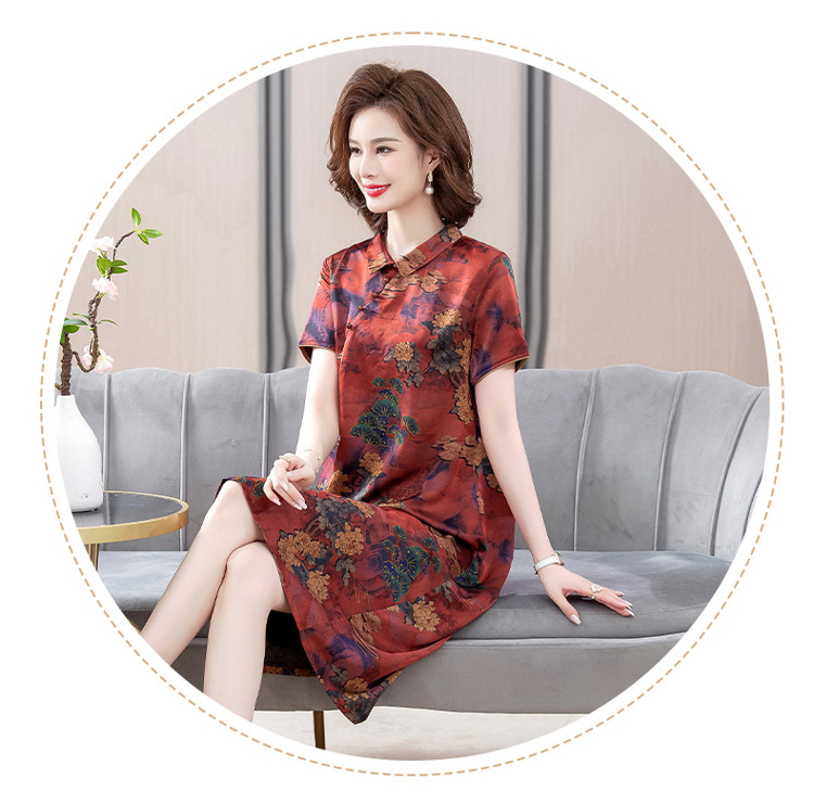 2024 중년 · 노인 산모 실크 샹윤 원사 원피스 신형 치파뽕나무 실크 귀족 서양식 중년 원피스