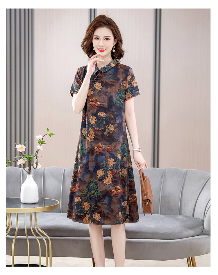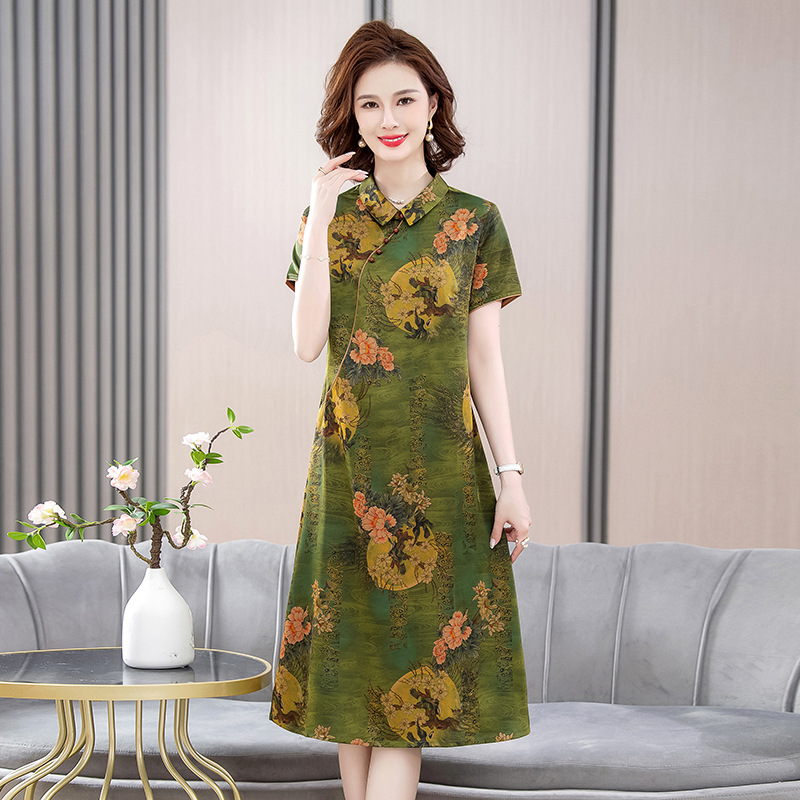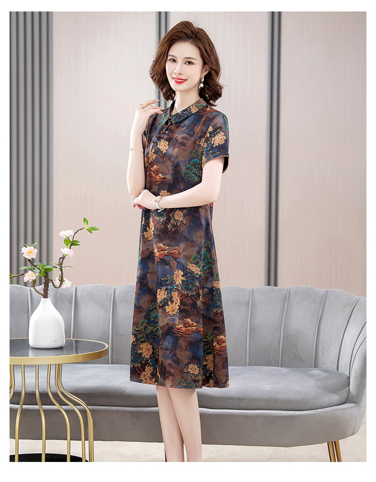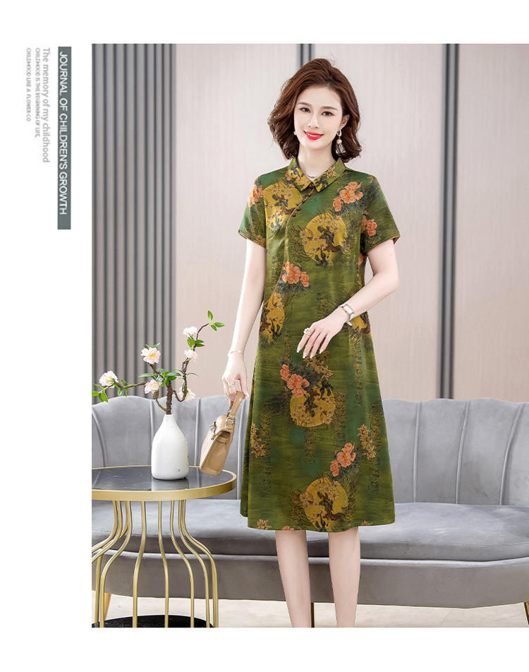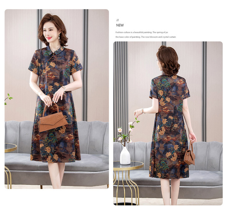 2024 중년 · 노인 산모 실크 샹윤 원사 원피스 신형 치파뽕나무 실크 귀족 서양식 중년 원피스