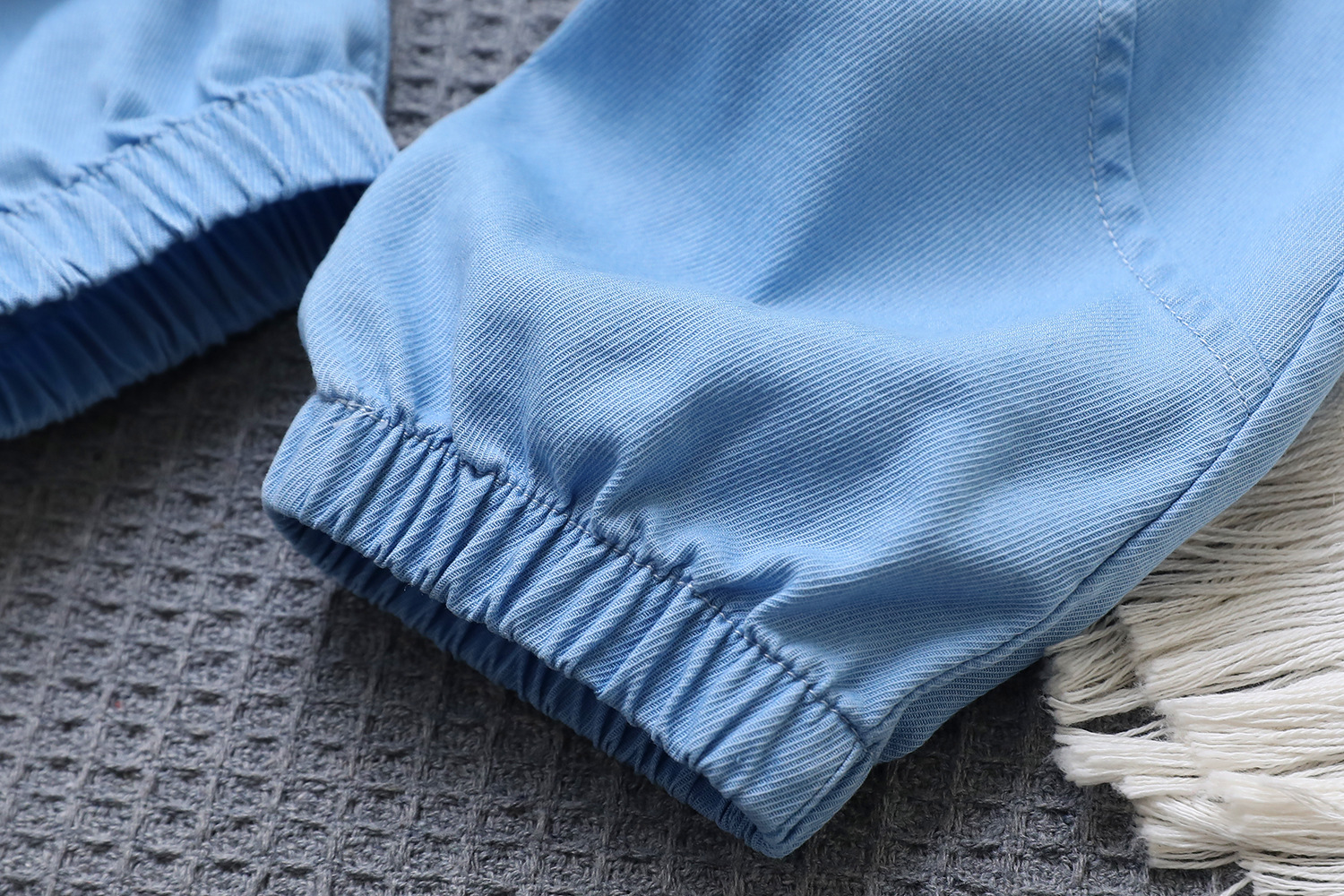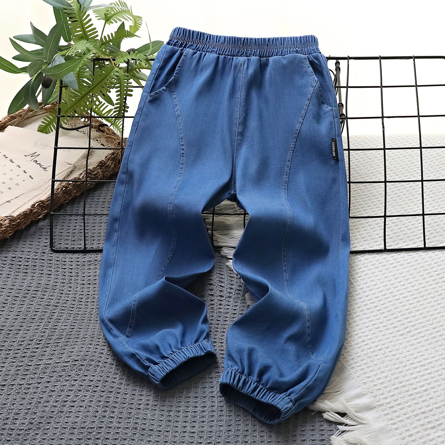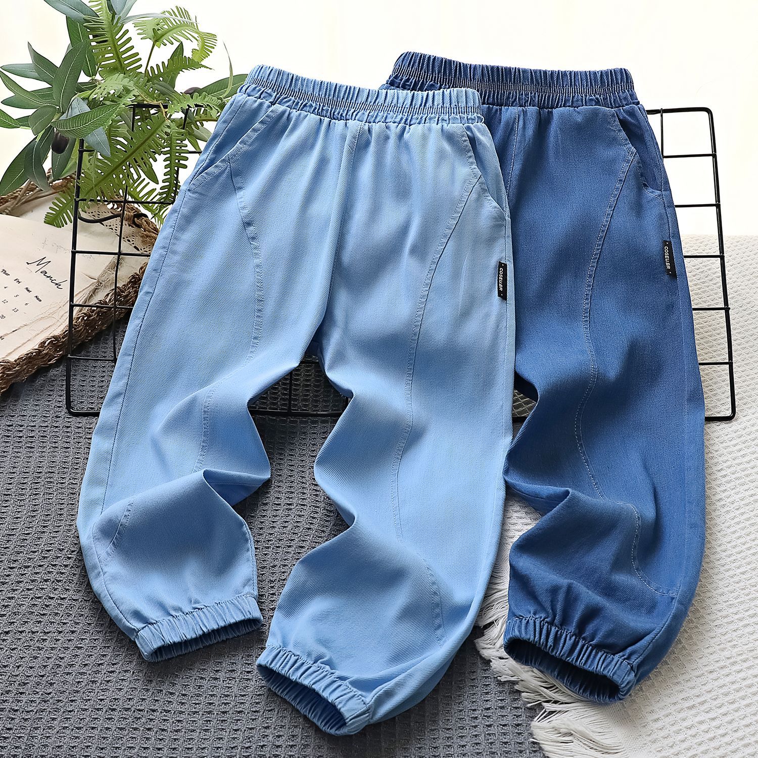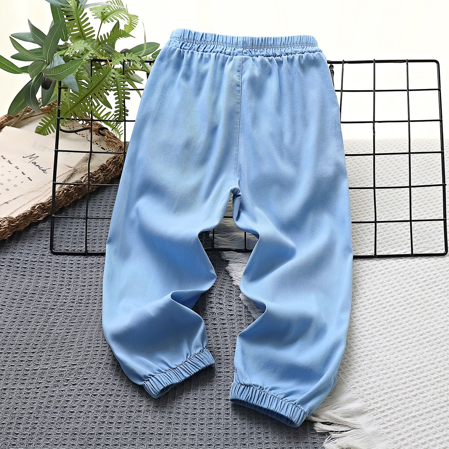 어린이용 여름 데님 모기 방지 바지, 능직 텐셀 스트레치 바지, 중대형 어린이를 위한 여름 속건성 플랫 와이드 팬츠