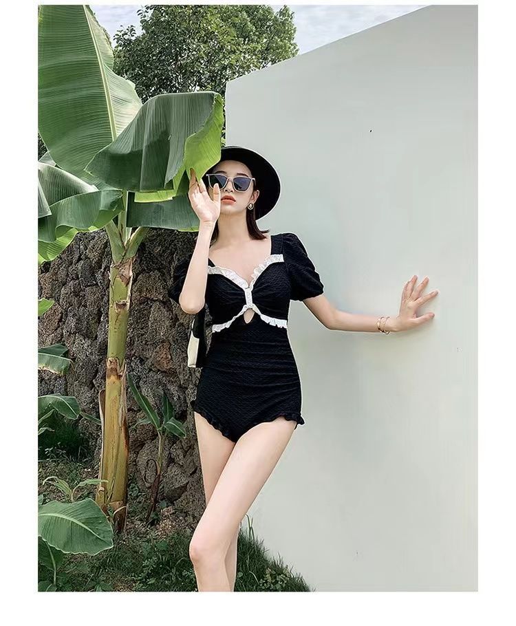 새로운 수영복 여성의 순수한 욕망 스타일 보수적 인 원피스 스커트 수영복 높은 허리 육체 커버 슬림 모양의 학생 온천 수영복스토어 가기
