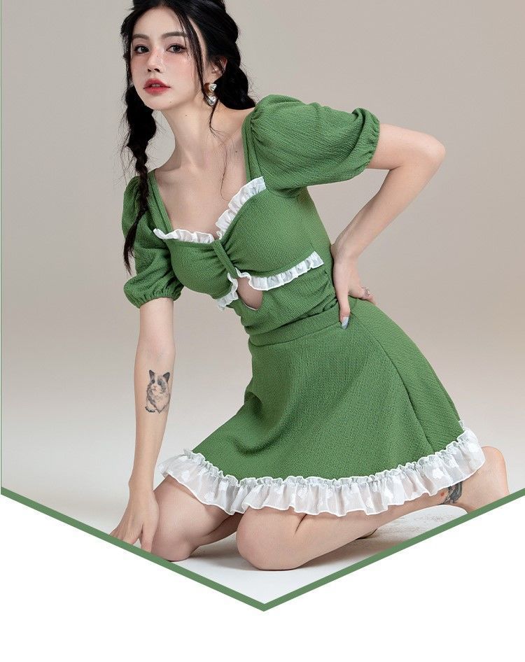 새로운 수영복 여성의 순수한 욕망 스타일 보수적 인 원피스 스커트 수영복 높은 허리 육체 커버 슬림 모양의 학생 온천 수영복