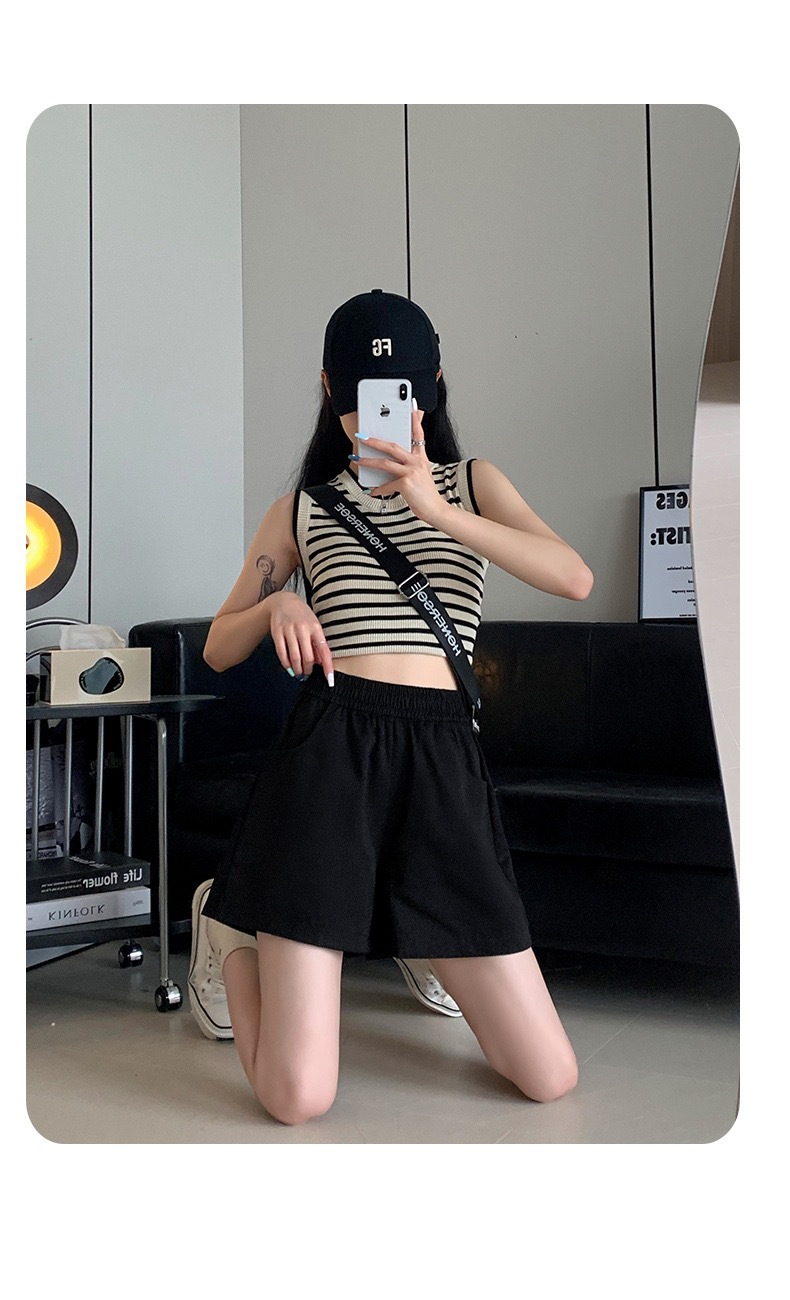 작업복 반바지 여성 2024 여름 얇은 캐주얼 와이드 레그 바지 한국식 하이 웨이스트 느슨한 슬리밍 아우터웨어 다용도 3 바지스토어 가기