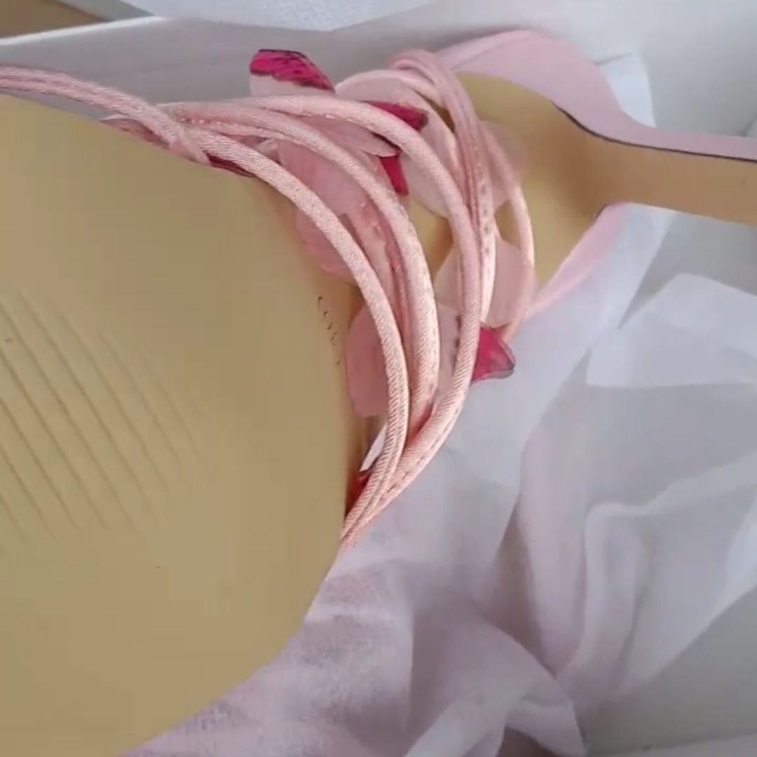 仙女风粉色蝴蝶结高跟鞋2023夏季细跟大码凉鞋女时尚甜美交叉绑带