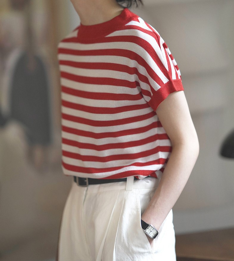 진저에일 2025/SS “바닷가에서” 소매가 있는 니트 해양 스타일 셔츠스토어 가기