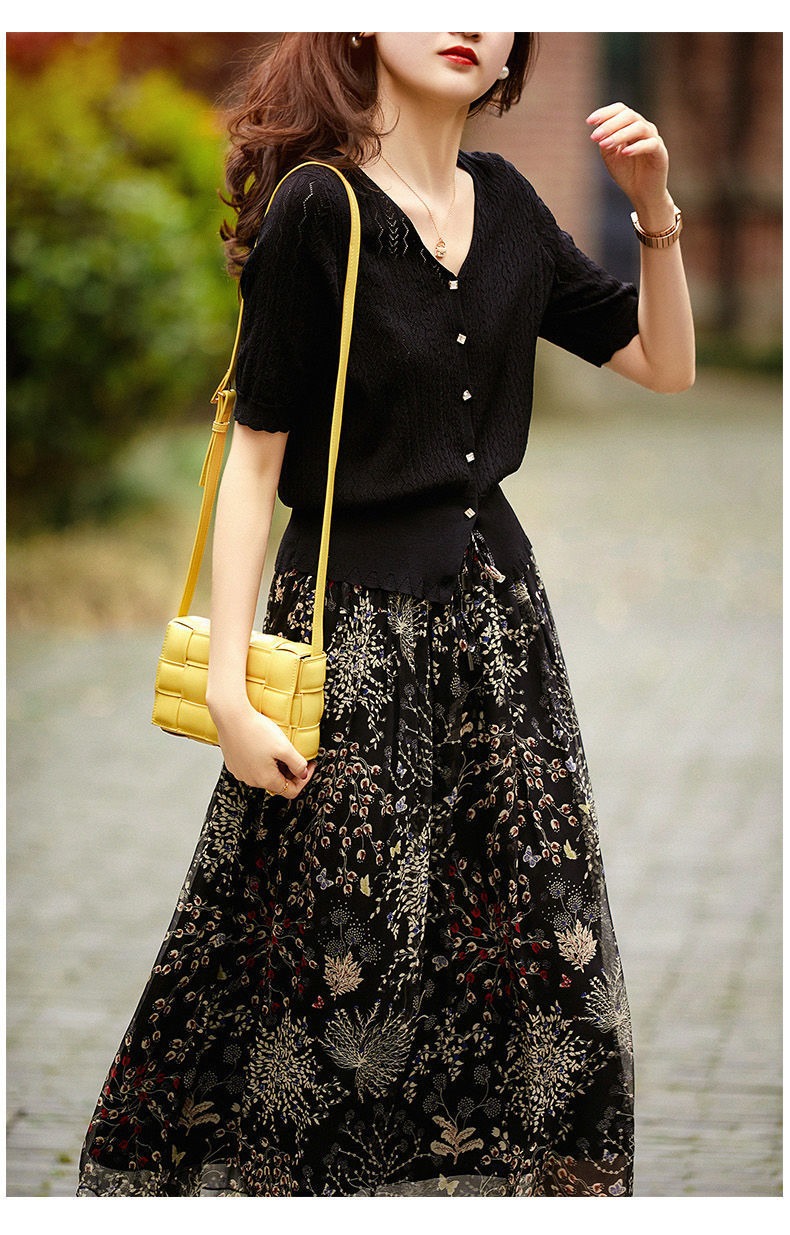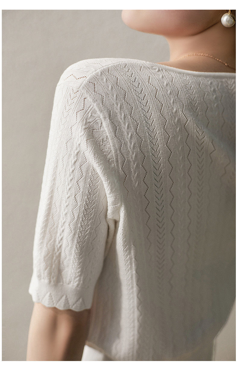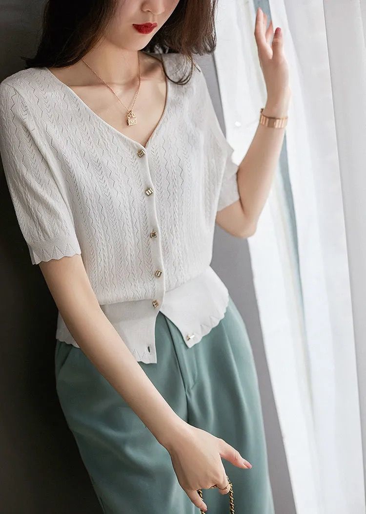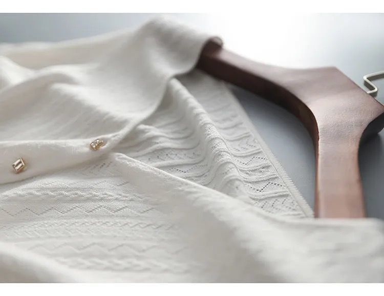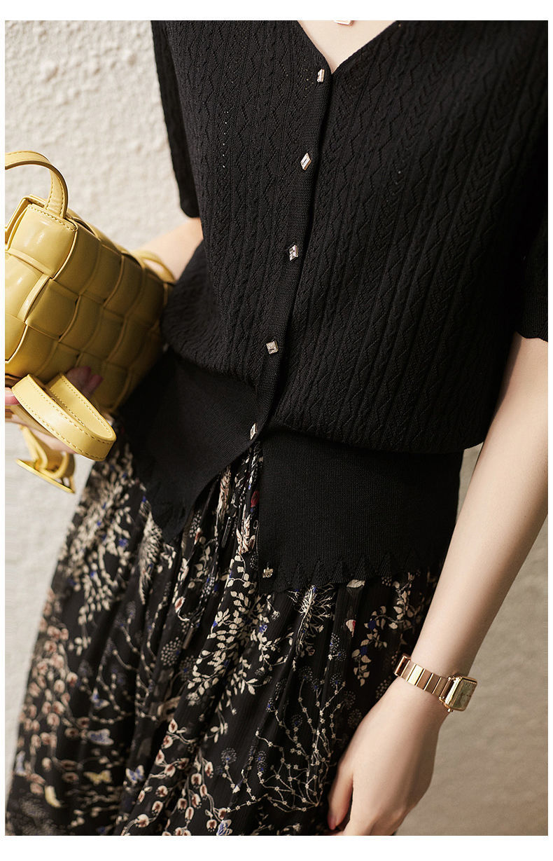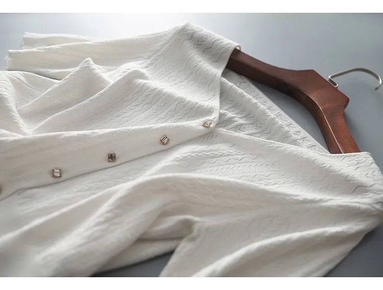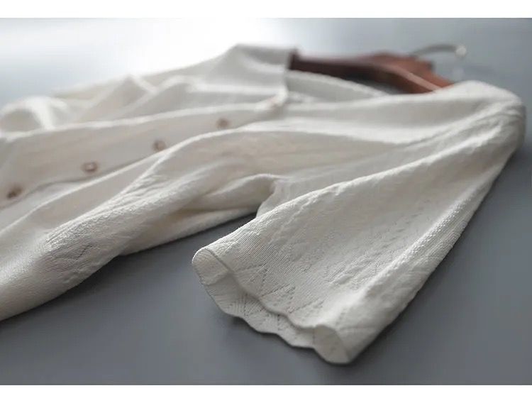 V 넥 카디건 여성의 새로운 디자인 감각 틈새 스웨터 단색 패션 에어컨 셔츠 한국식 중공 아이스 실크 탑