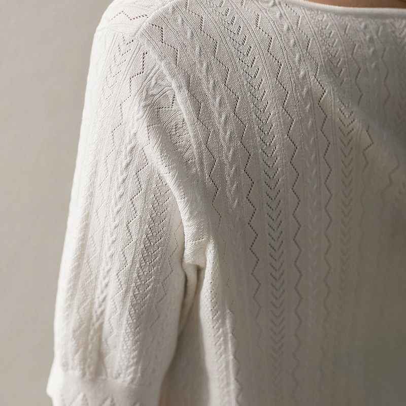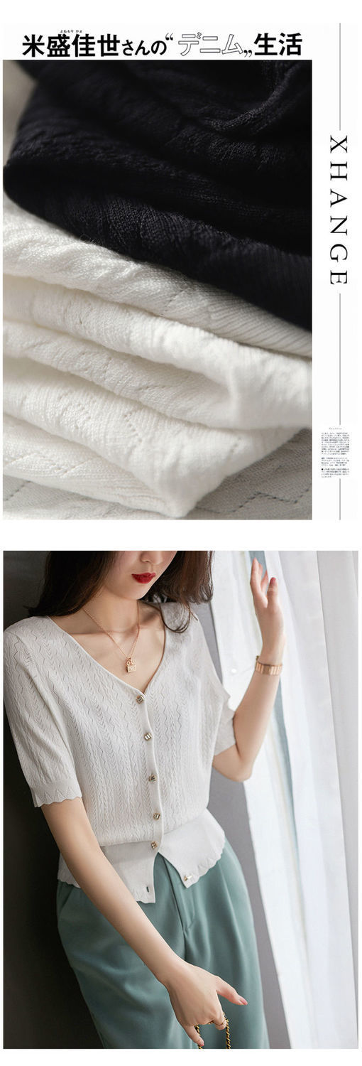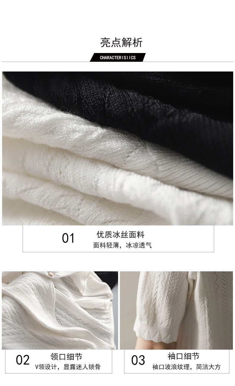 V 넥 카디건 여성의 새로운 디자인 감각 틈새 스웨터 단색 패션 에어컨 셔츠 한국식 중공 아이스 실크 탑스토어 가기