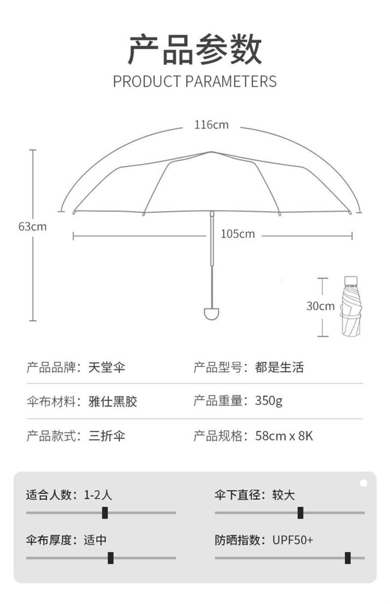 파라다이스 33819E 도시 생활 3 배 우산 태양 우산 남성과 여성이 이중 사용 비닐 차양을 접습니다.스토어 가기