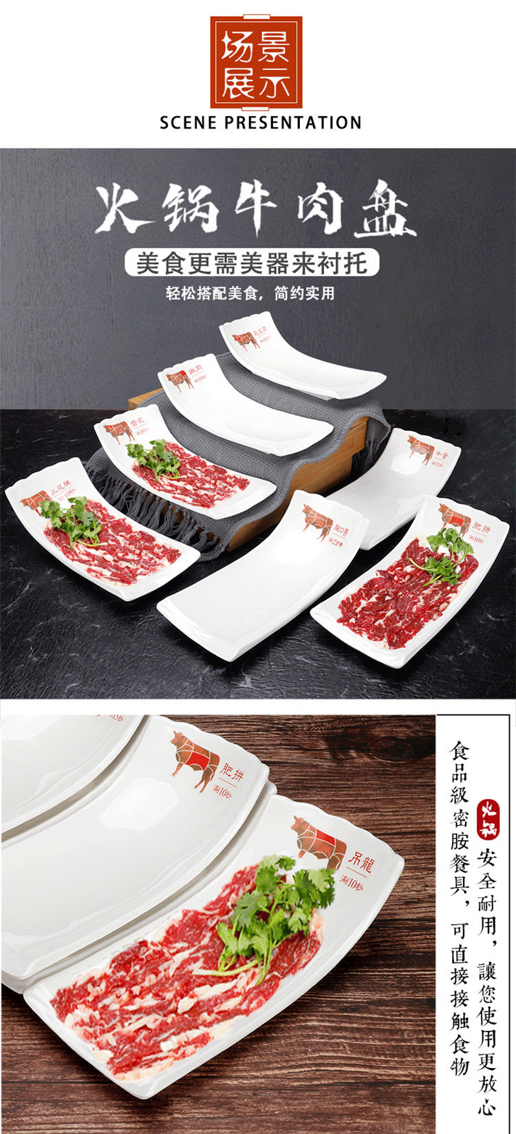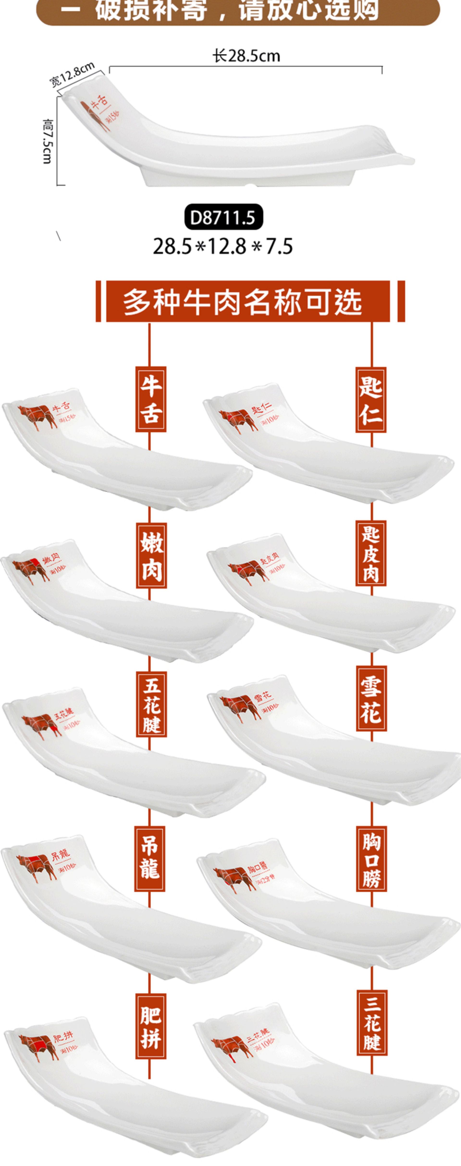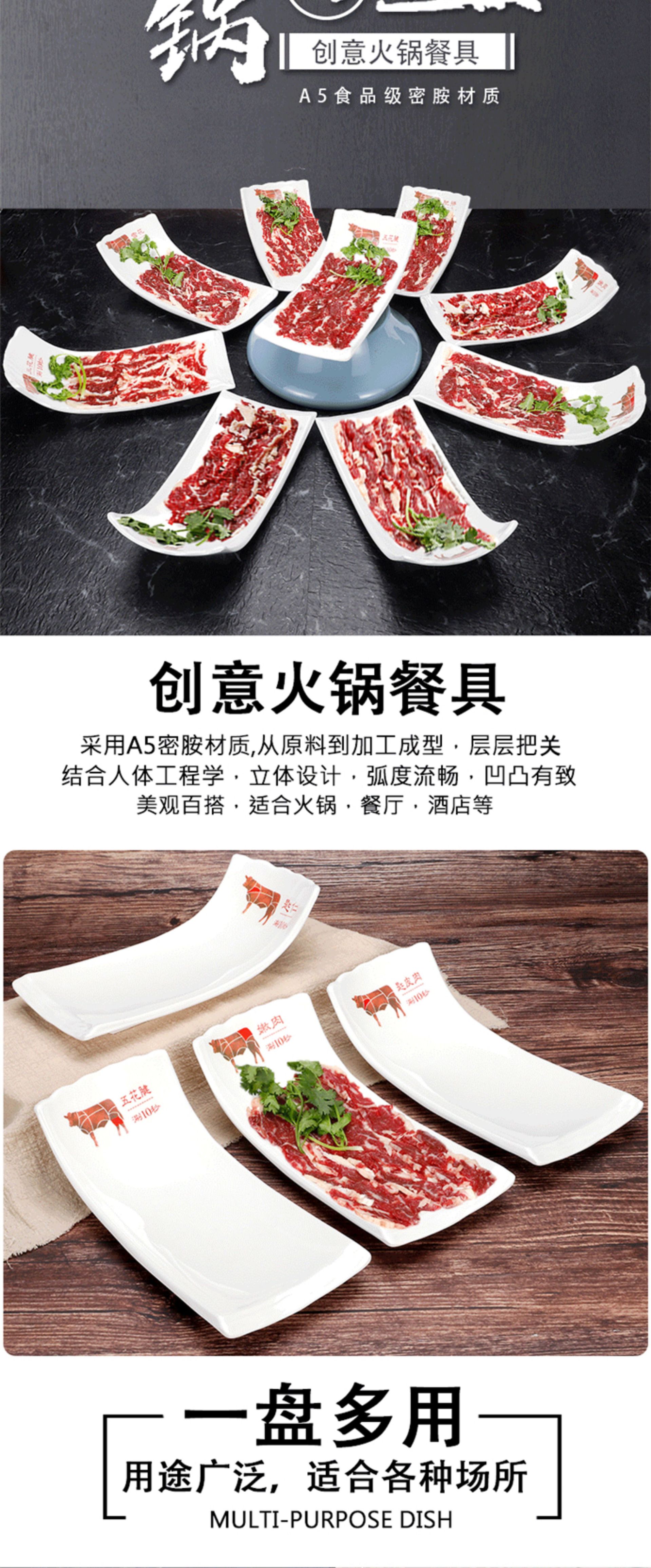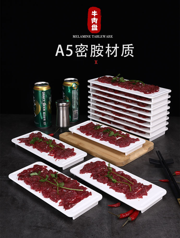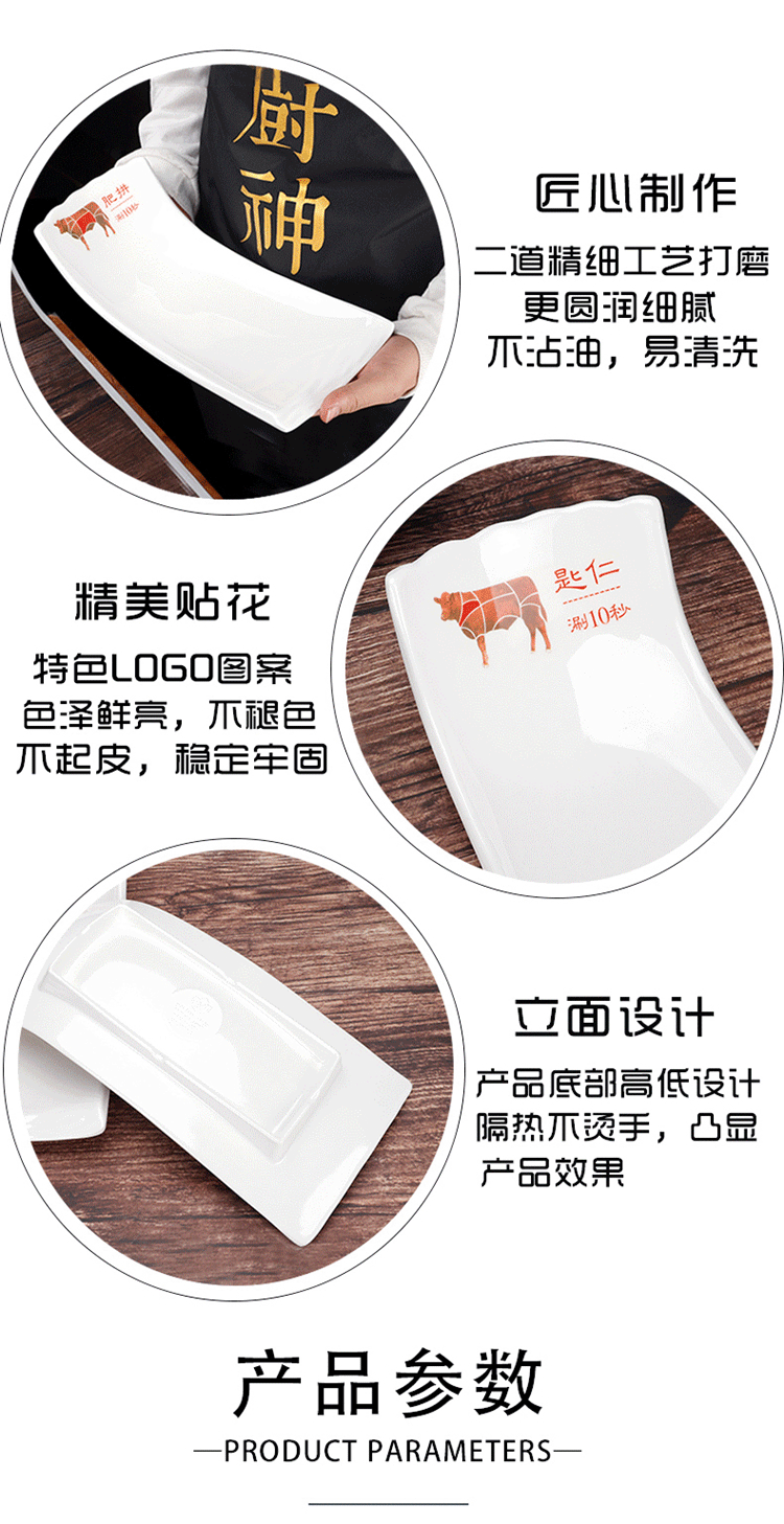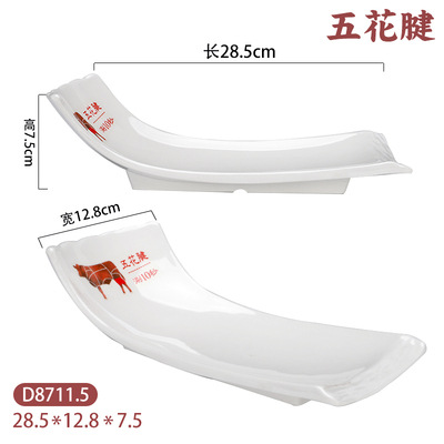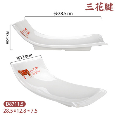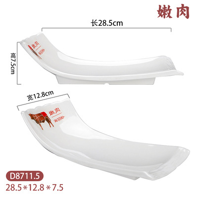 화이트 멜라민 차오산 핫팟 레스토랑 쇠고기 플레이트 창조적 인 도자기 식기 레스토랑 뷔페 바베큐 요리 상업