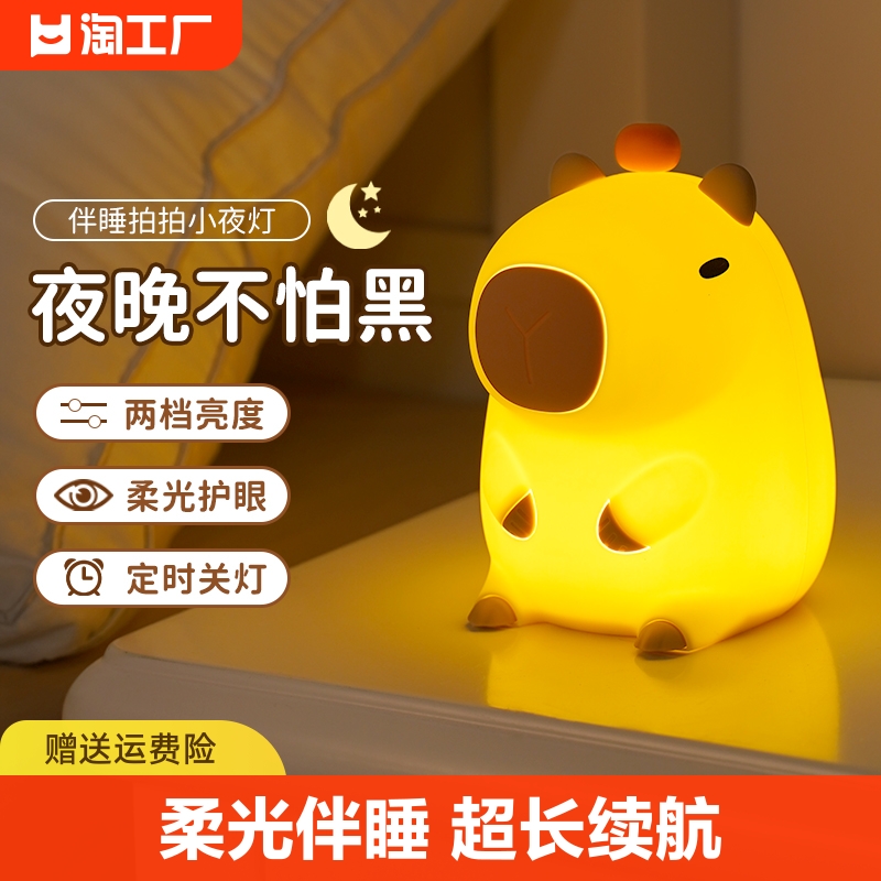 新款充电卡皮巴拉氛围灯喂奶护眼台灯睡眠床头灯硅胶拍拍灯小夜灯