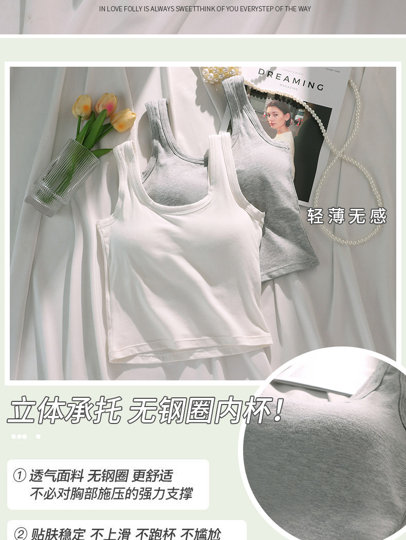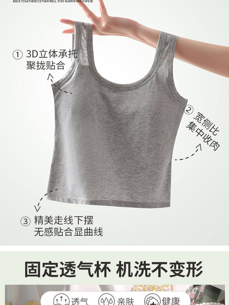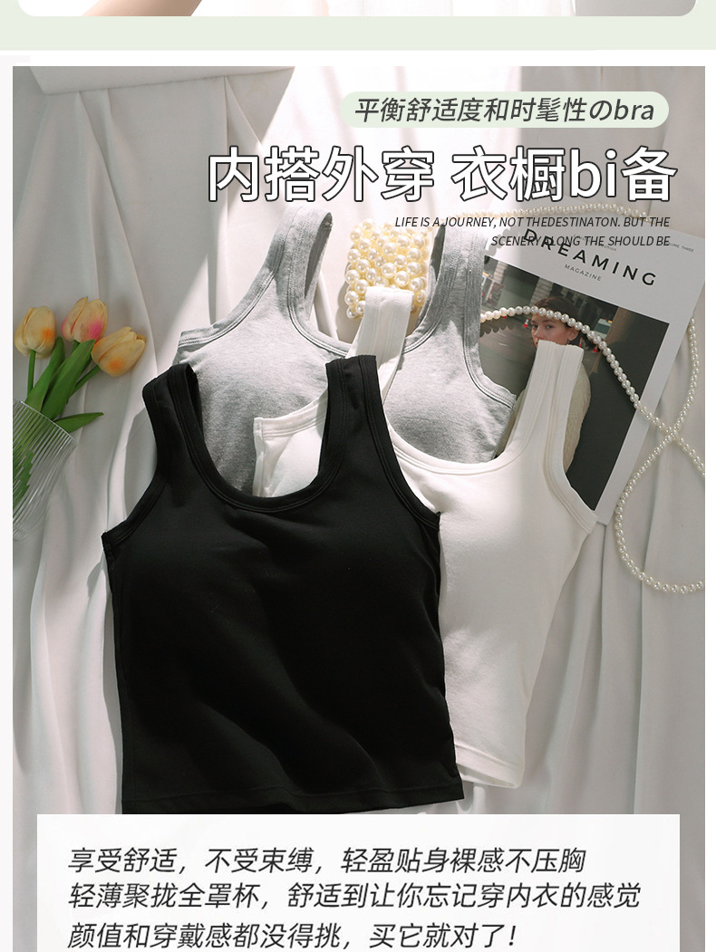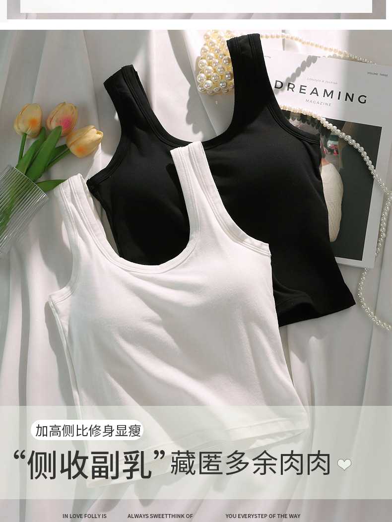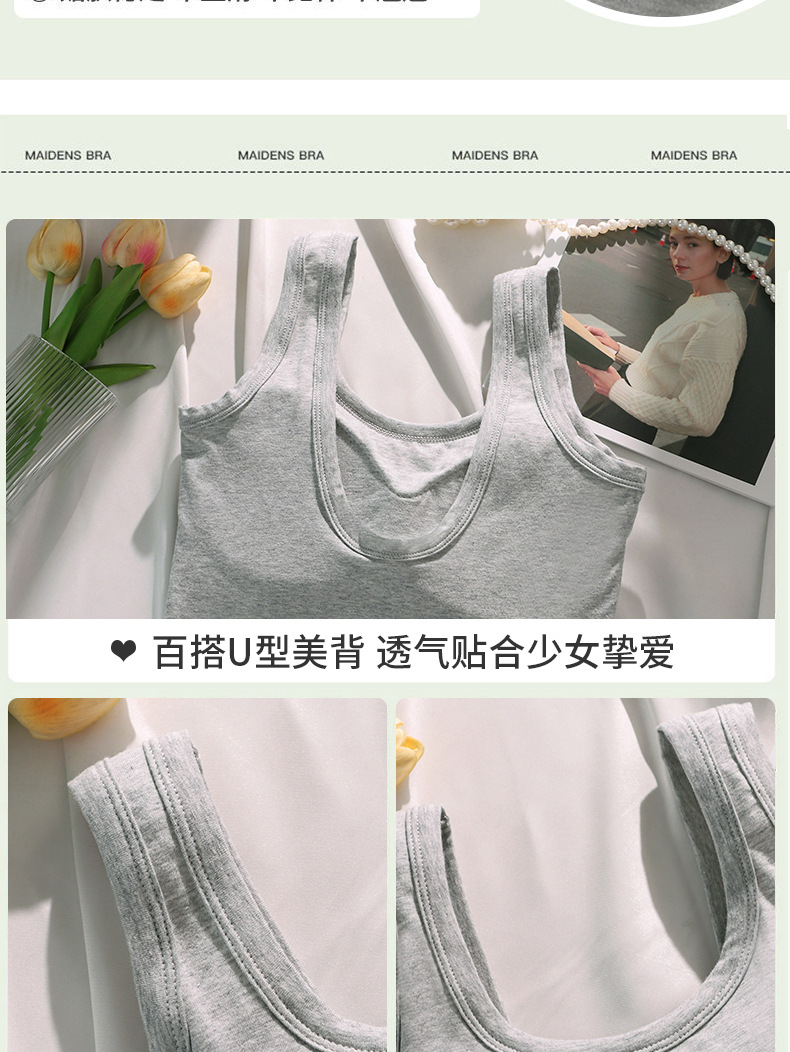 U 자형 코튼 조끼 원피스 고정 컵 내복은 뷰티 백 학생 중학생베이스 속옷 여성 가슴 밖에서 착용 할 수 있습니다.스토어 가기