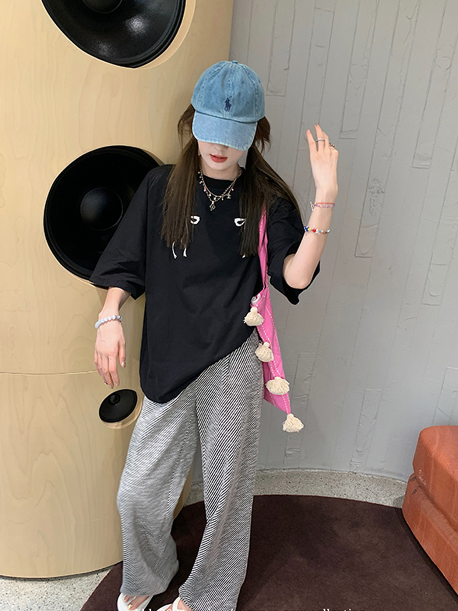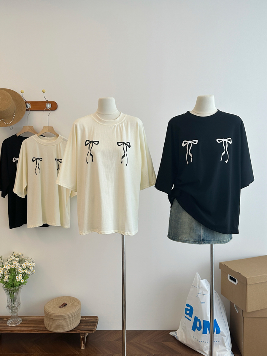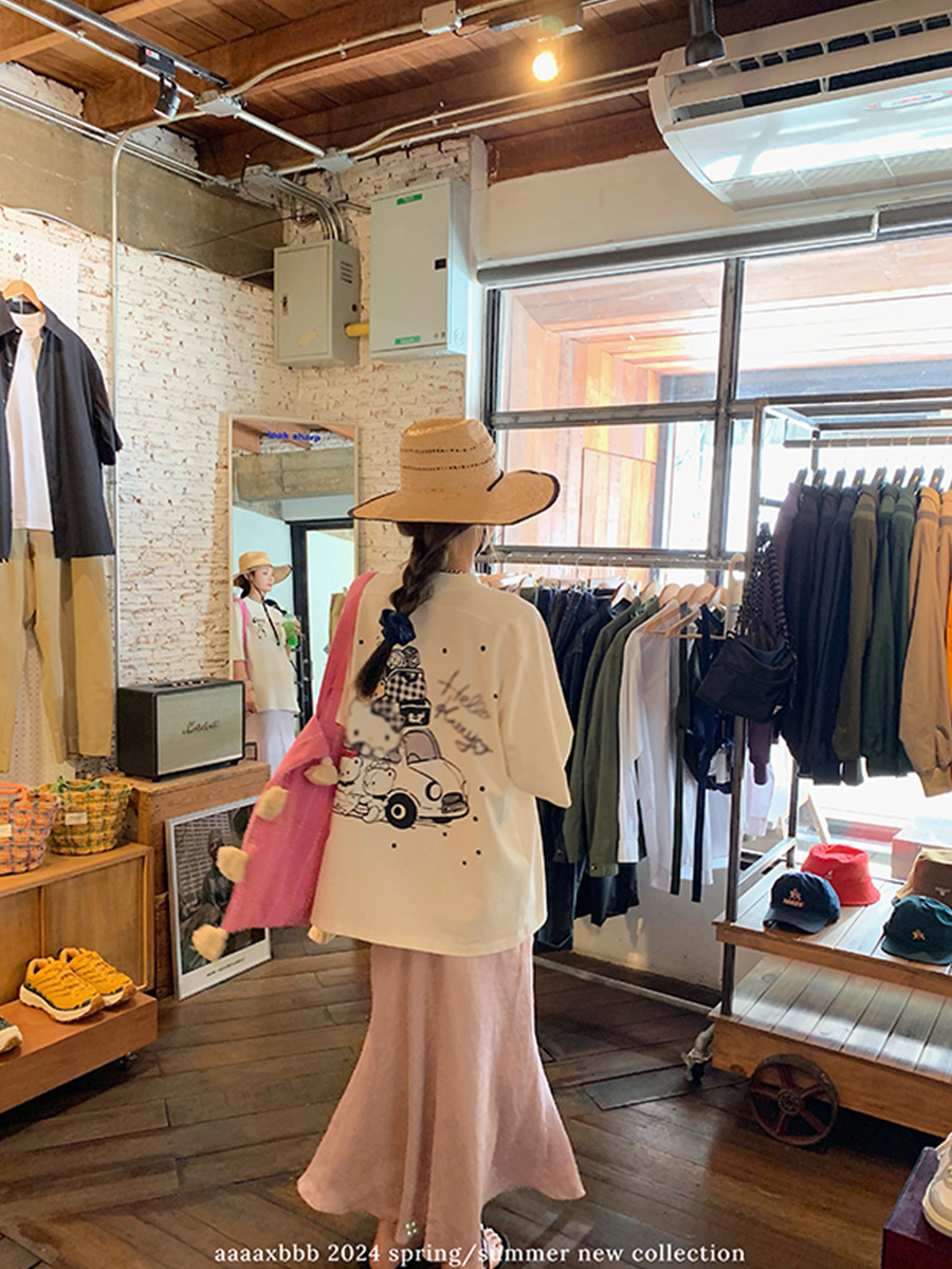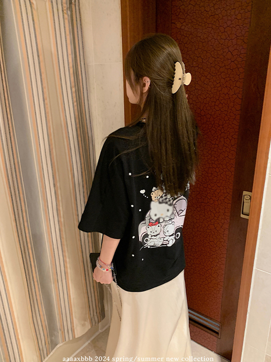 Aaaaxbb 귀여운 키티 코튼 티셔츠 오버 사이즈 귀여운 프린트 루즈 라운드 넥 올 매치 쇼트 슬리브 여성스토어 가기