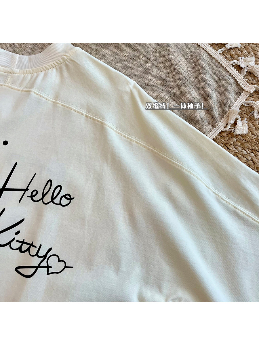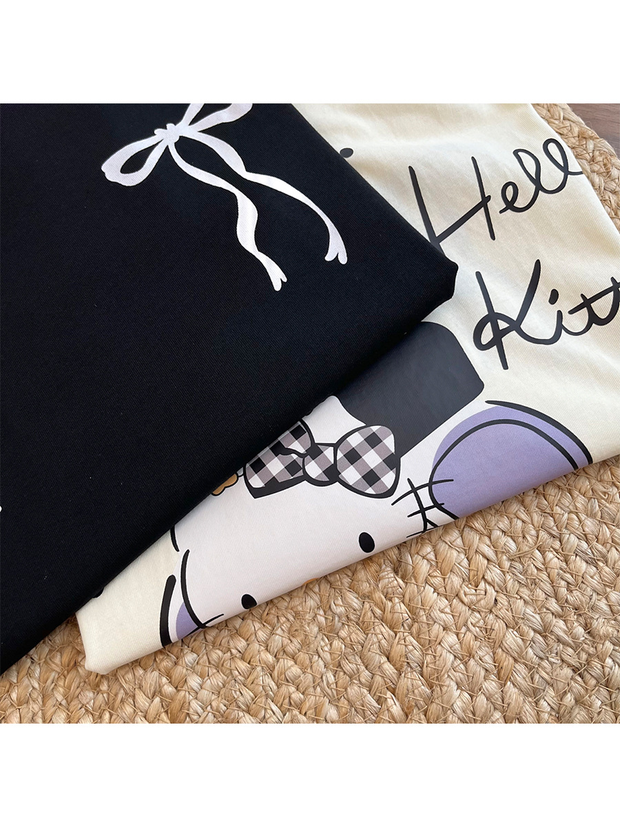 Aaaaxbb 귀여운 키티 코튼 티셔츠 오버 사이즈 귀여운 프린트 루즈 라운드 넥 올 매치 쇼트 슬리브 여성
