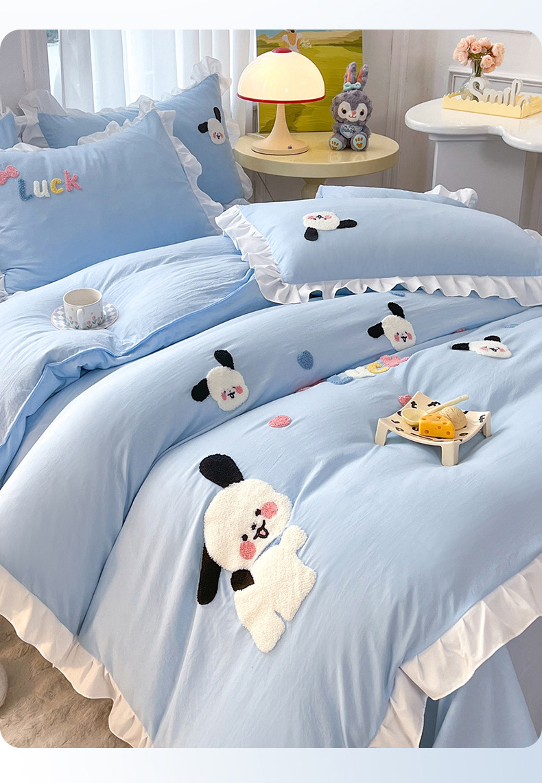 2024 년 새 만화의 한국어 버전 작은 신선한 면화 세척면 연꽃 잎 레이스 수건 자수 4 종 세트 도매 한국어 버전
