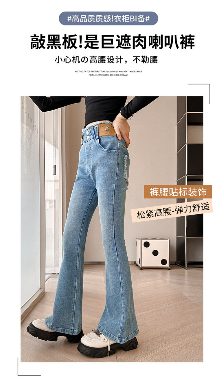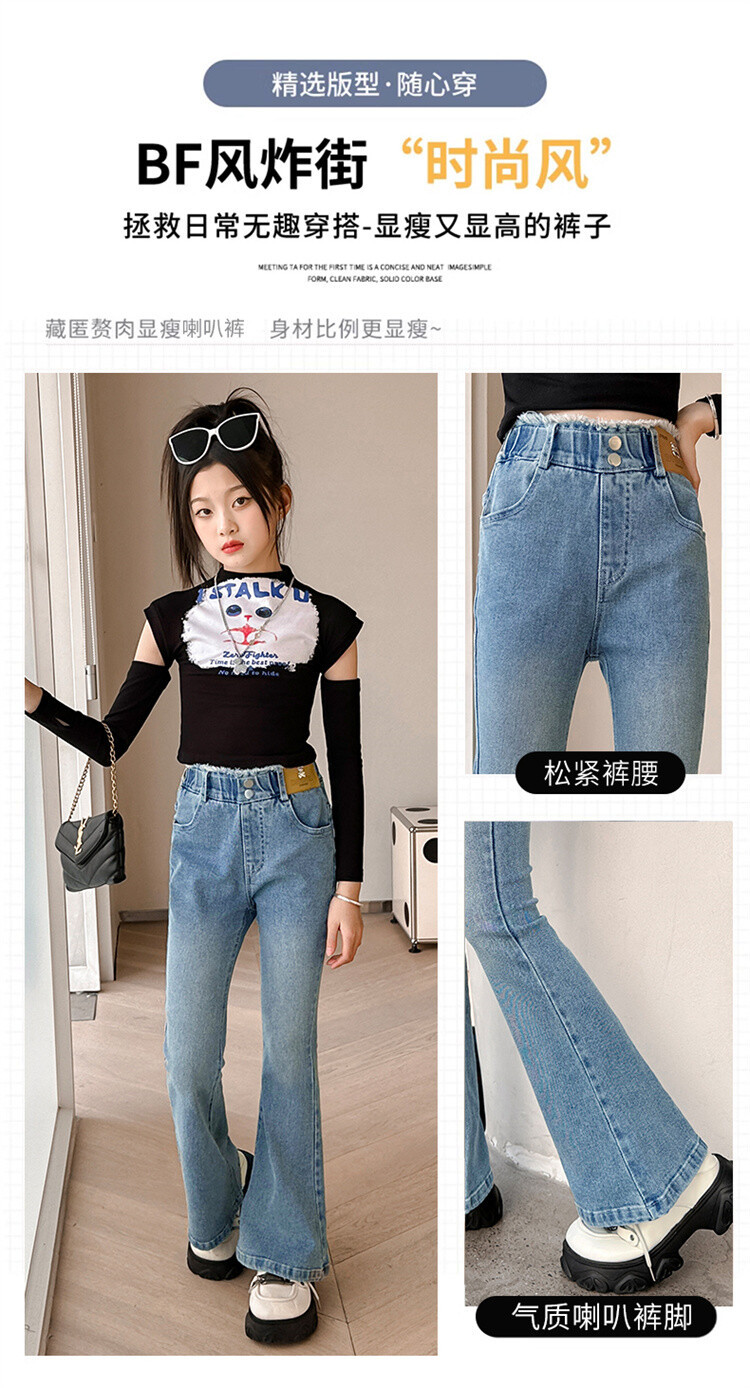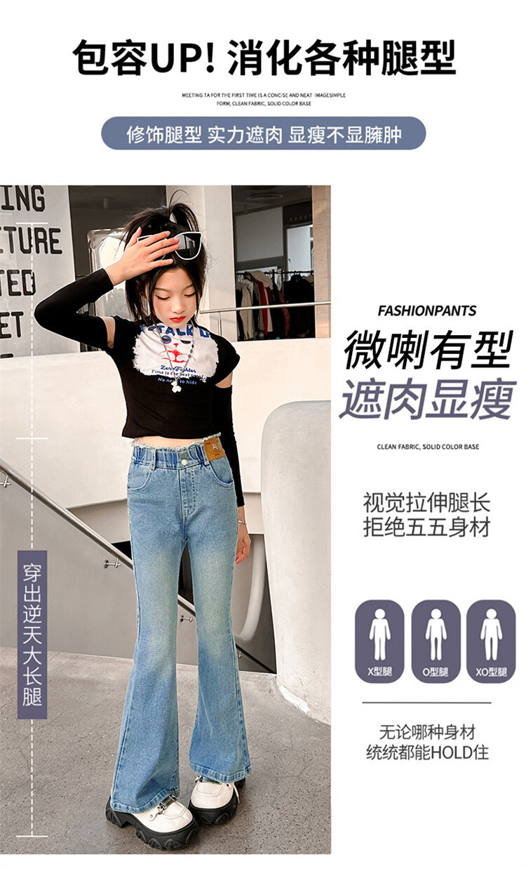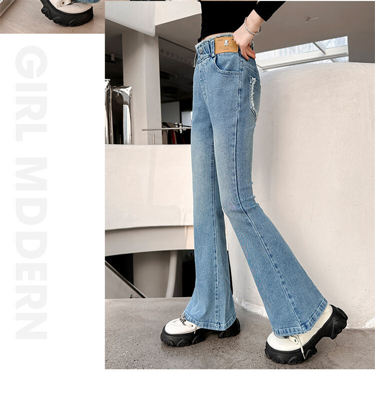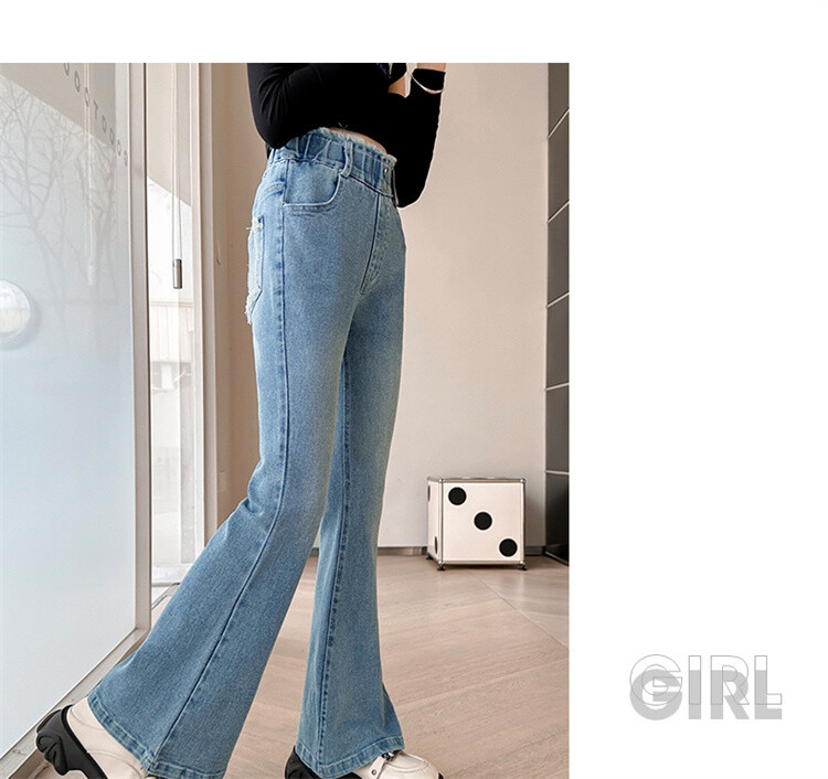 소녀 플레어 바지 봄과 가을 새로운 어린이 바지 중 큰 어린이 플레어 바지 소녀 바지 청바지 서양식 간단한 아동복스토어 가기