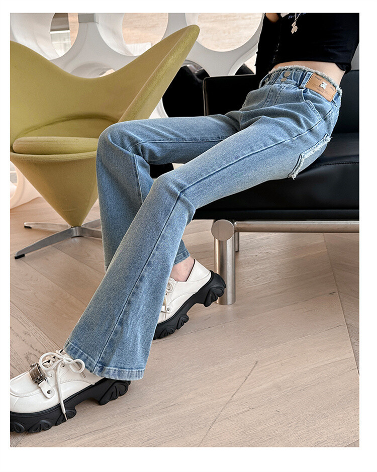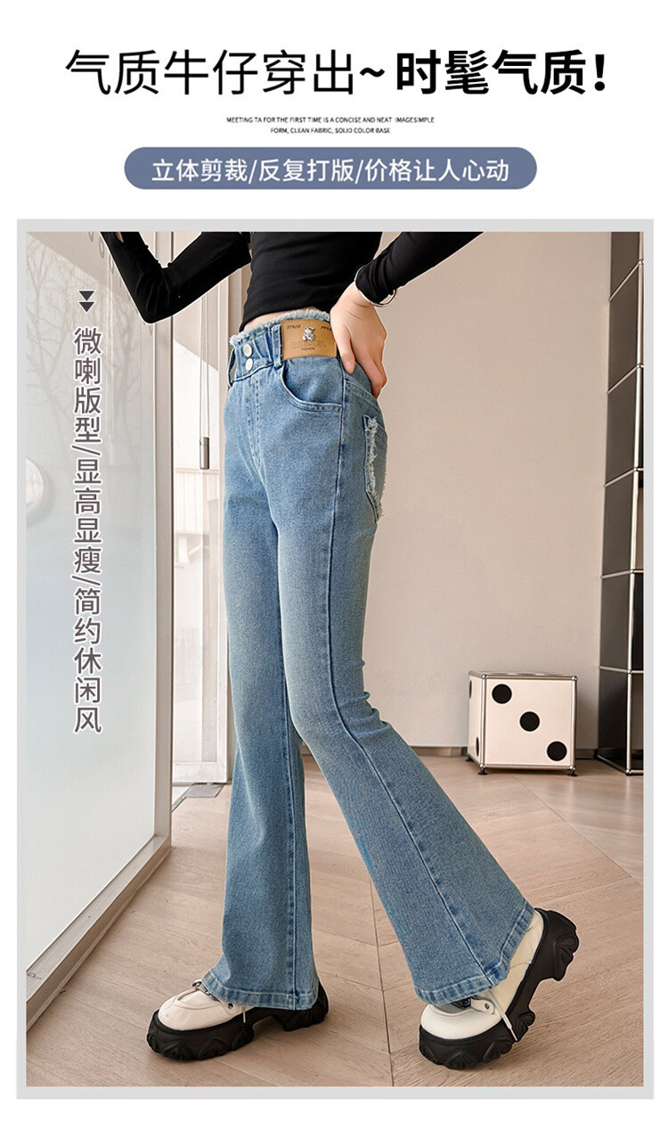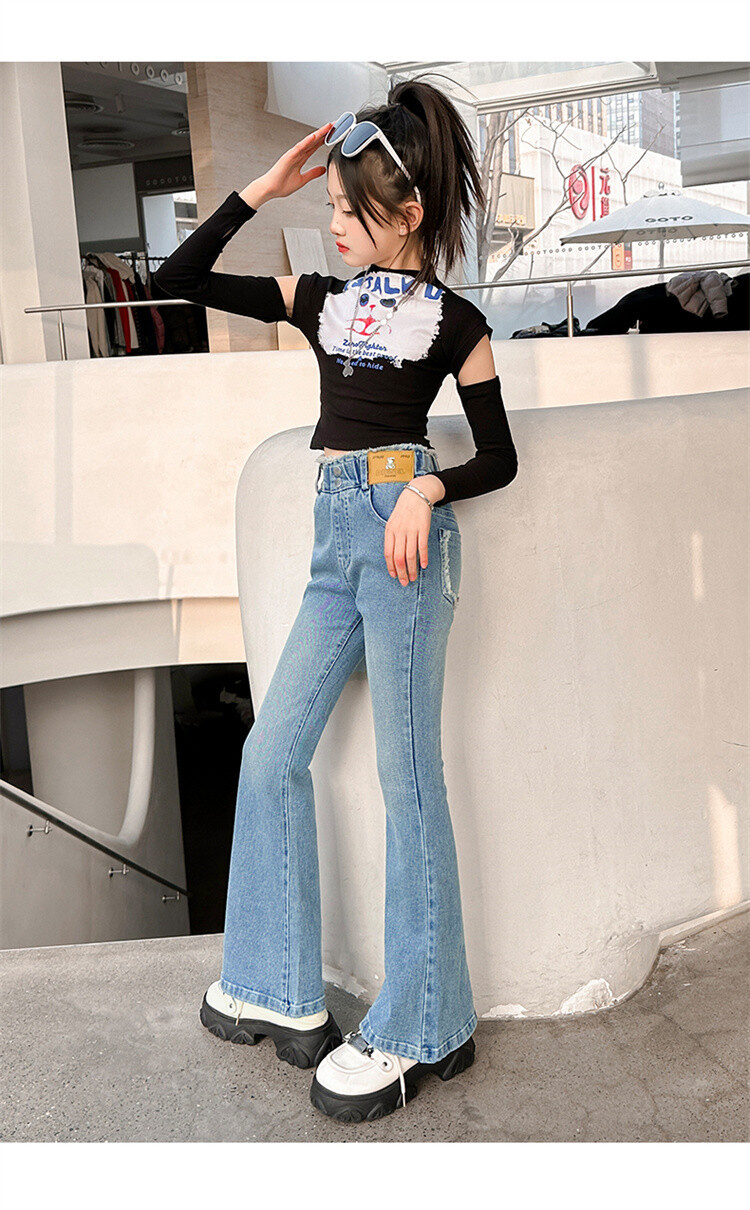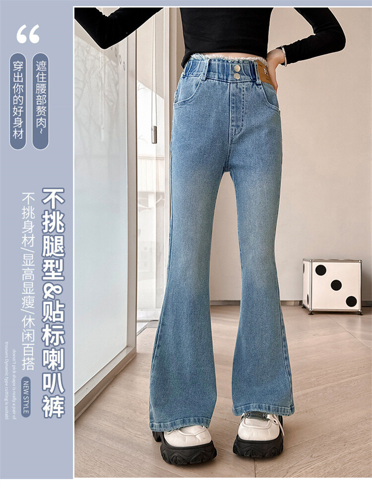 소녀 플레어 바지 봄과 가을 새로운 어린이 바지 중 큰 어린이 플레어 바지 소녀 바지 청바지 서양식 간단한 아동복스토어 가기