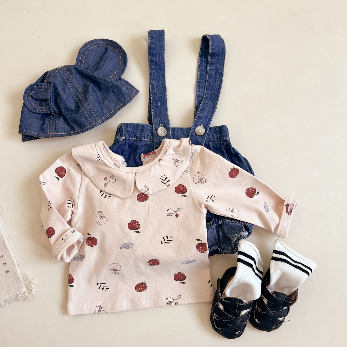 아기 티셔츠 24 봄 어린이 인형 칼라 긴팔 바닥 셔츠 아기 소녀의 긴팔 셔츠 한국 가을 in 꽃 면화