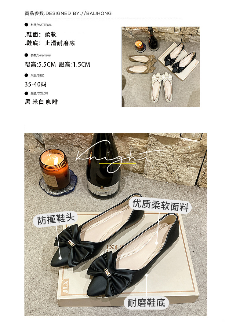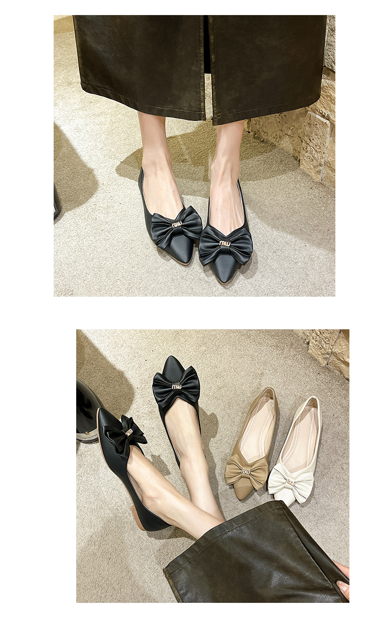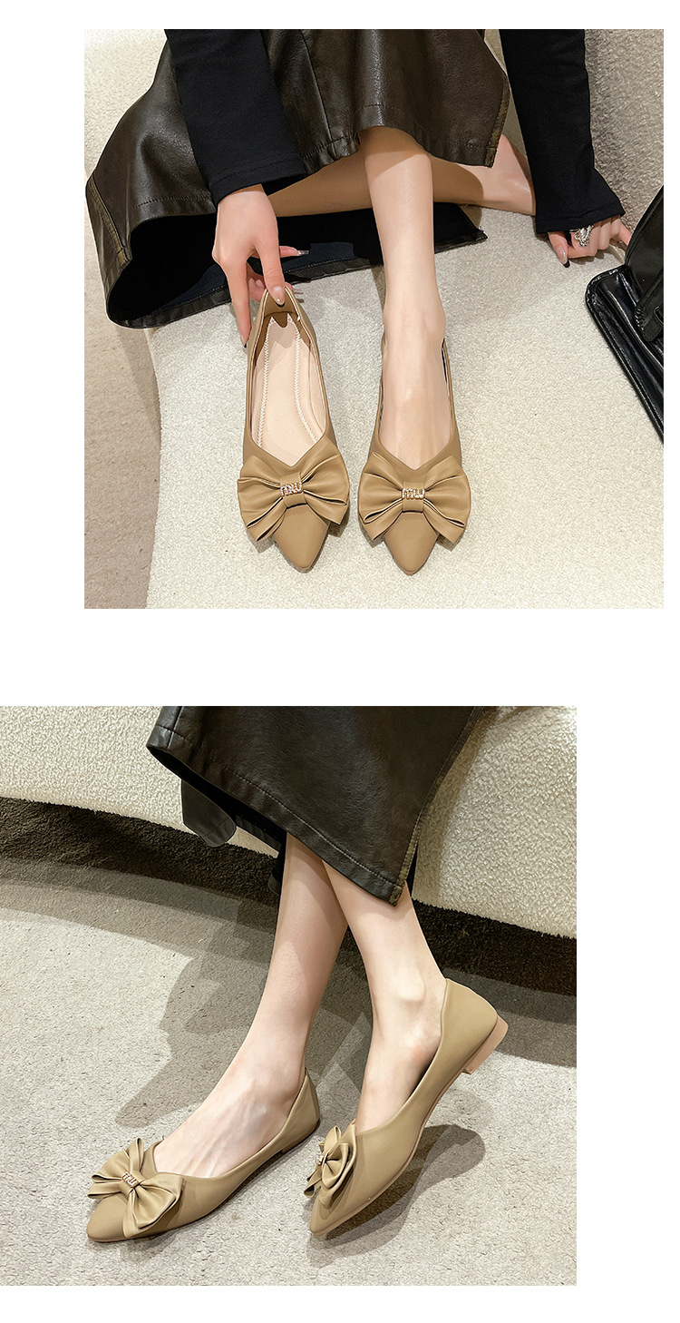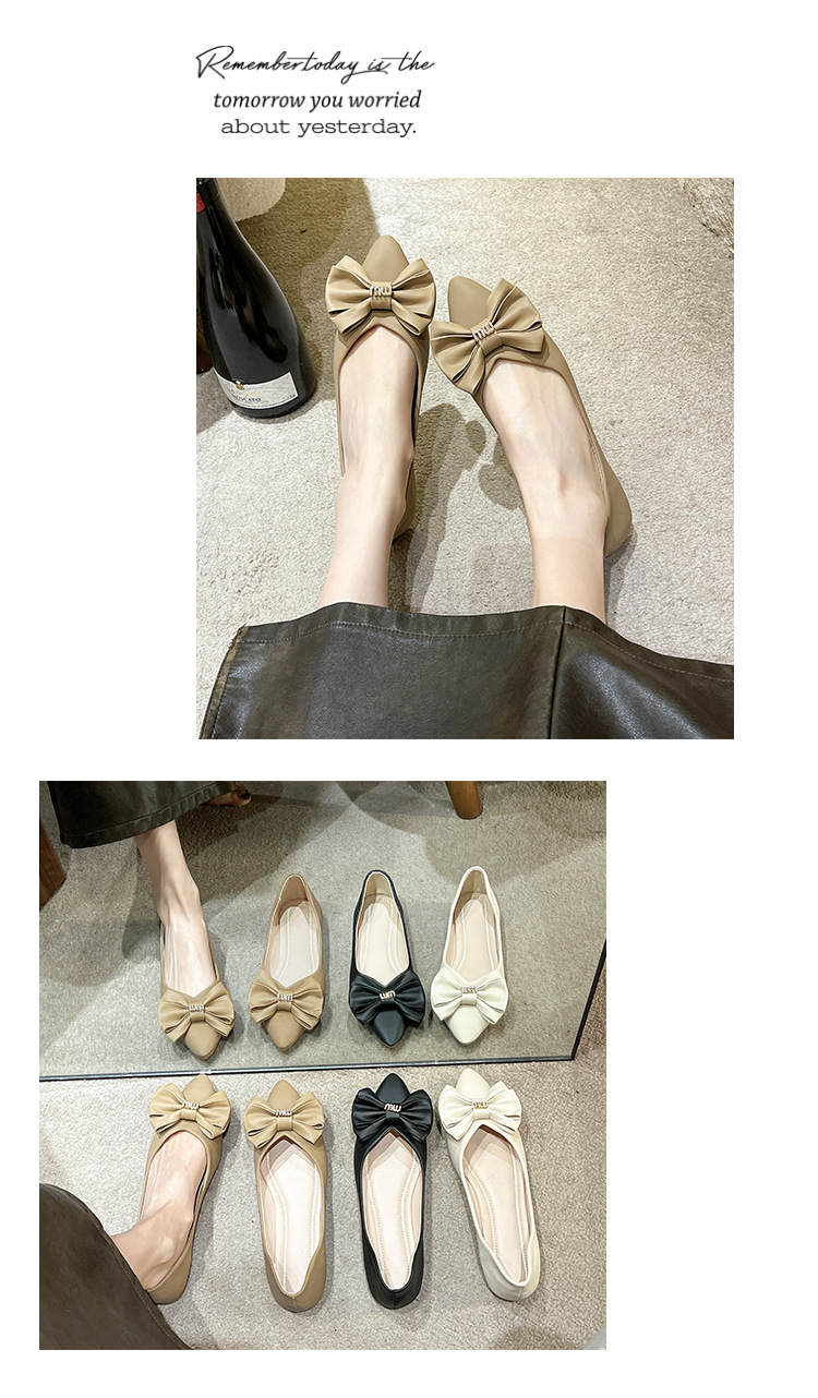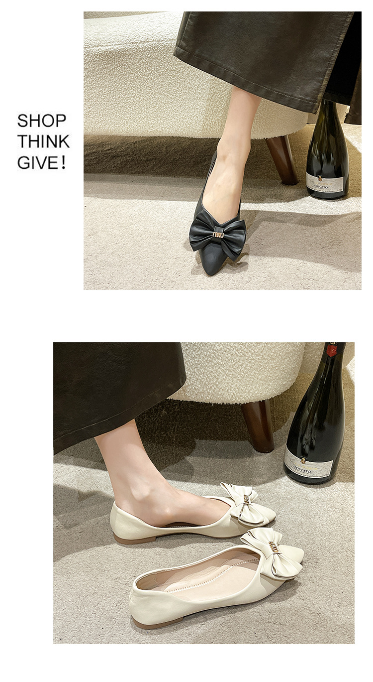 여성용 리본 슈즈 2025 봄 신상 여성용 포인티드 토 슈즈 스커트와 함께 신는 부드러운 밑창의 플랫 슈즈 한국 스타일 여성용 빈티지 슈즈스토어 가기