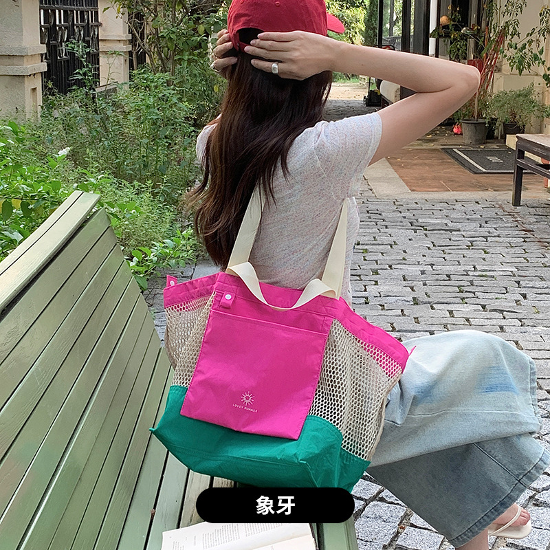 LOVEY SUMMER 여름 트렌디한 메쉬 숄더백 남녀공용 비치백 접이식 대용량 토트백
