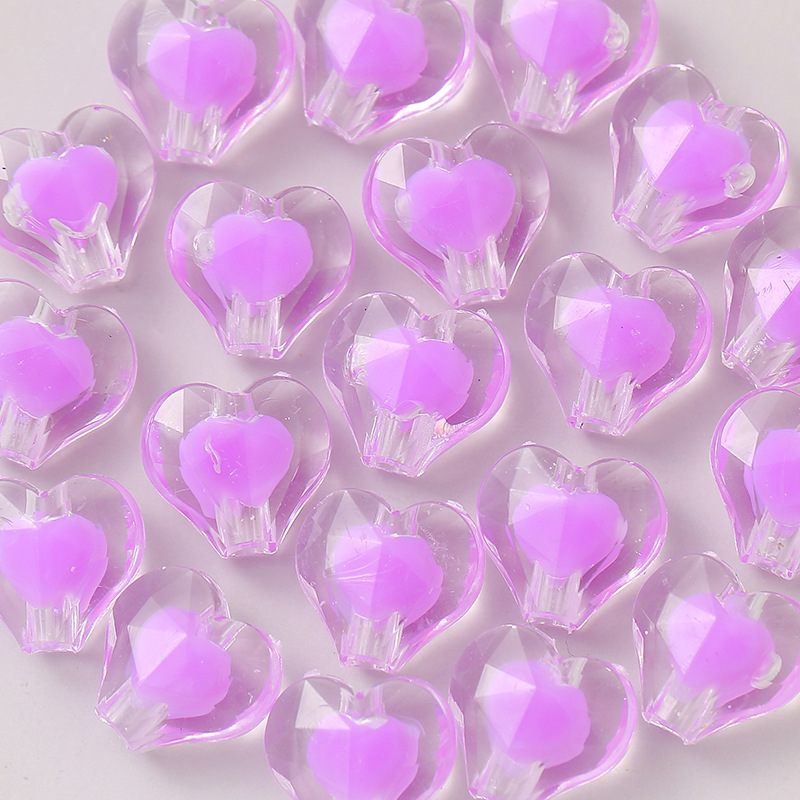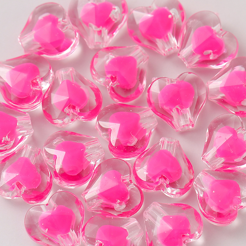 11x12mm 내부 색상 사랑 구슬 투명 아크릴 복숭아 심장 구슬 DIY 보석 구슬 팔찌 목걸이 구슬