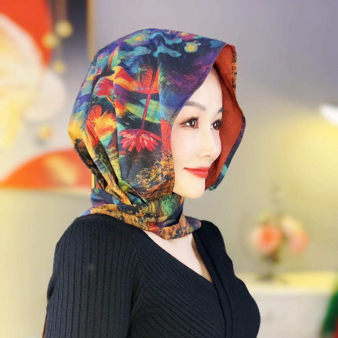 [리브 단조 스카프 캡] 봄 새로운 우아한 패션 올 매치 스카프 캡 다목적 방풍 태양 보호 숙녀