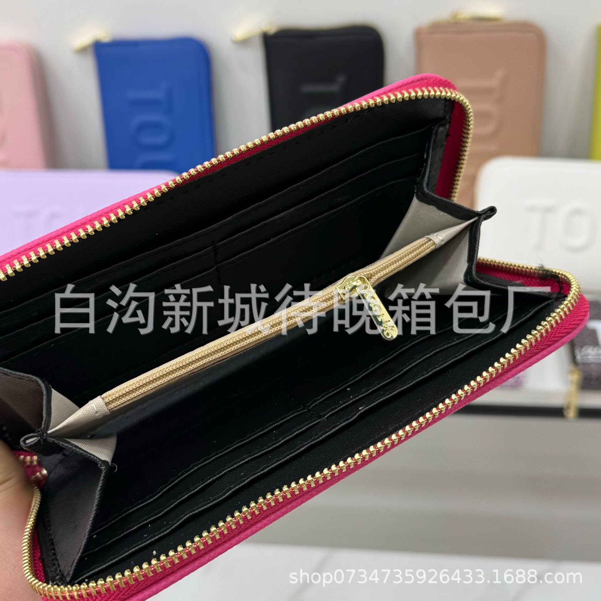 긴 짧은 단색 지갑 국경 여성 가방 2024 새로운 유럽과 미국 패션 인기있는 편지 개인화 된 핸드 지갑스토어 가기