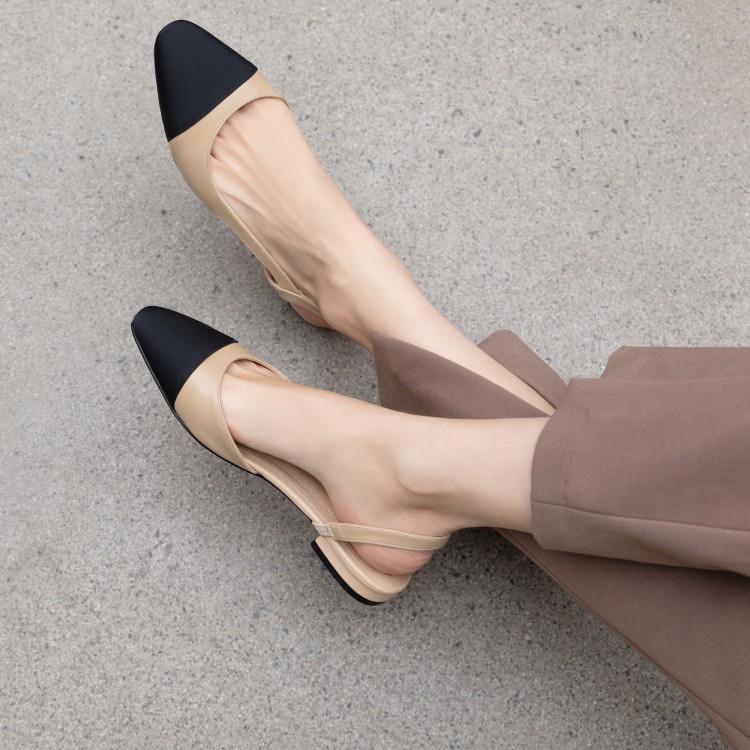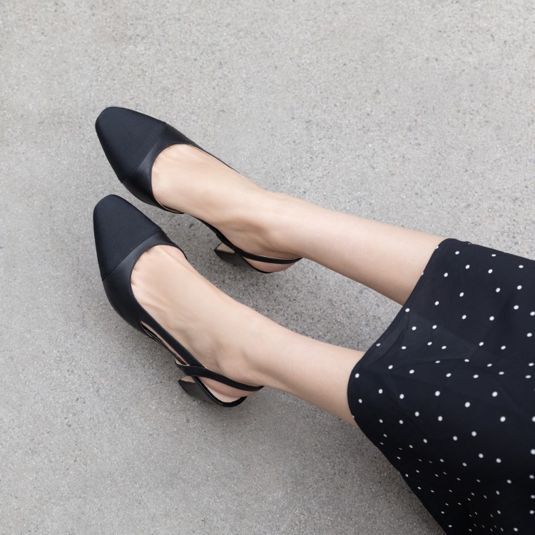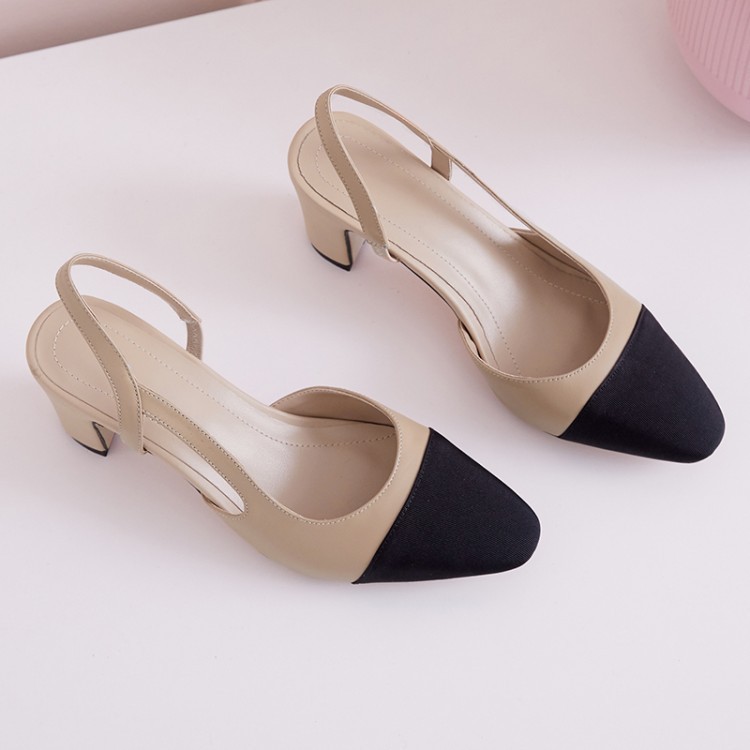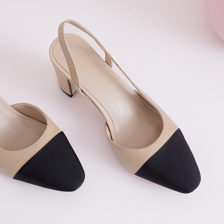 스팟 대외 무역 크로스보더 프렌치 두꺼운 굽 하이힐 컬러 블록 뒷부분 빈 발가락 샌들 대형 44 여성화 작은 향기로운 스타일 신발스토어 가기