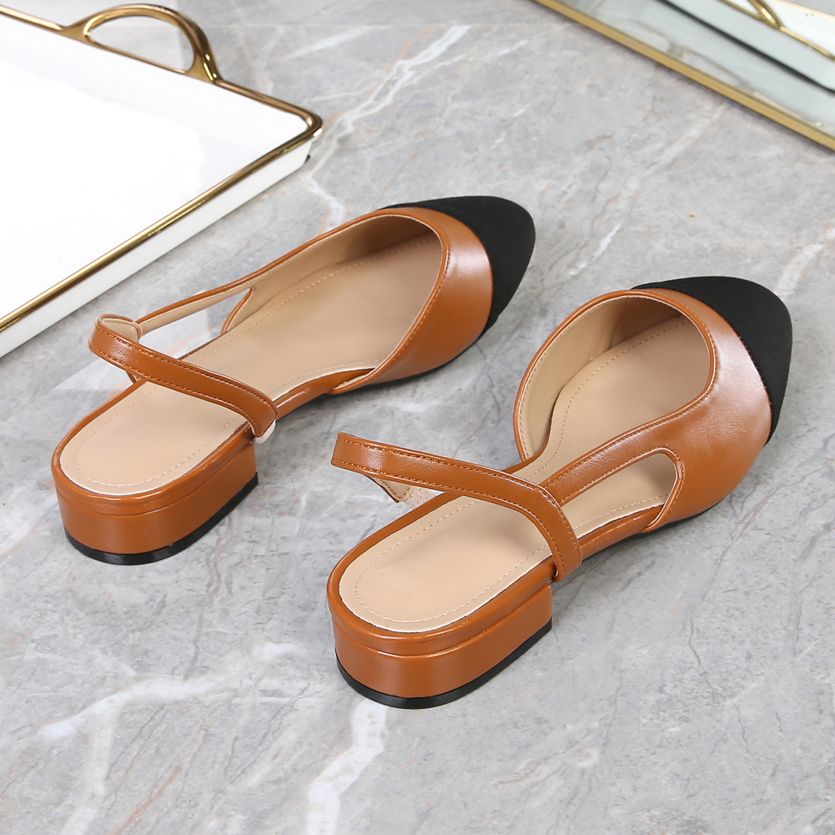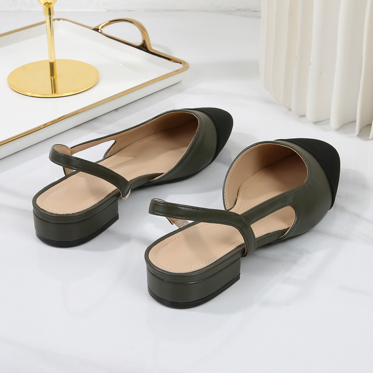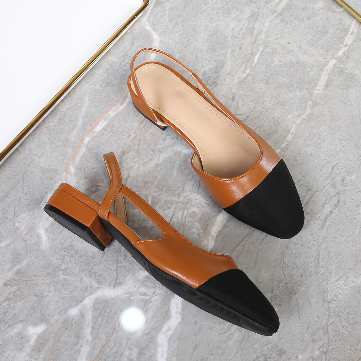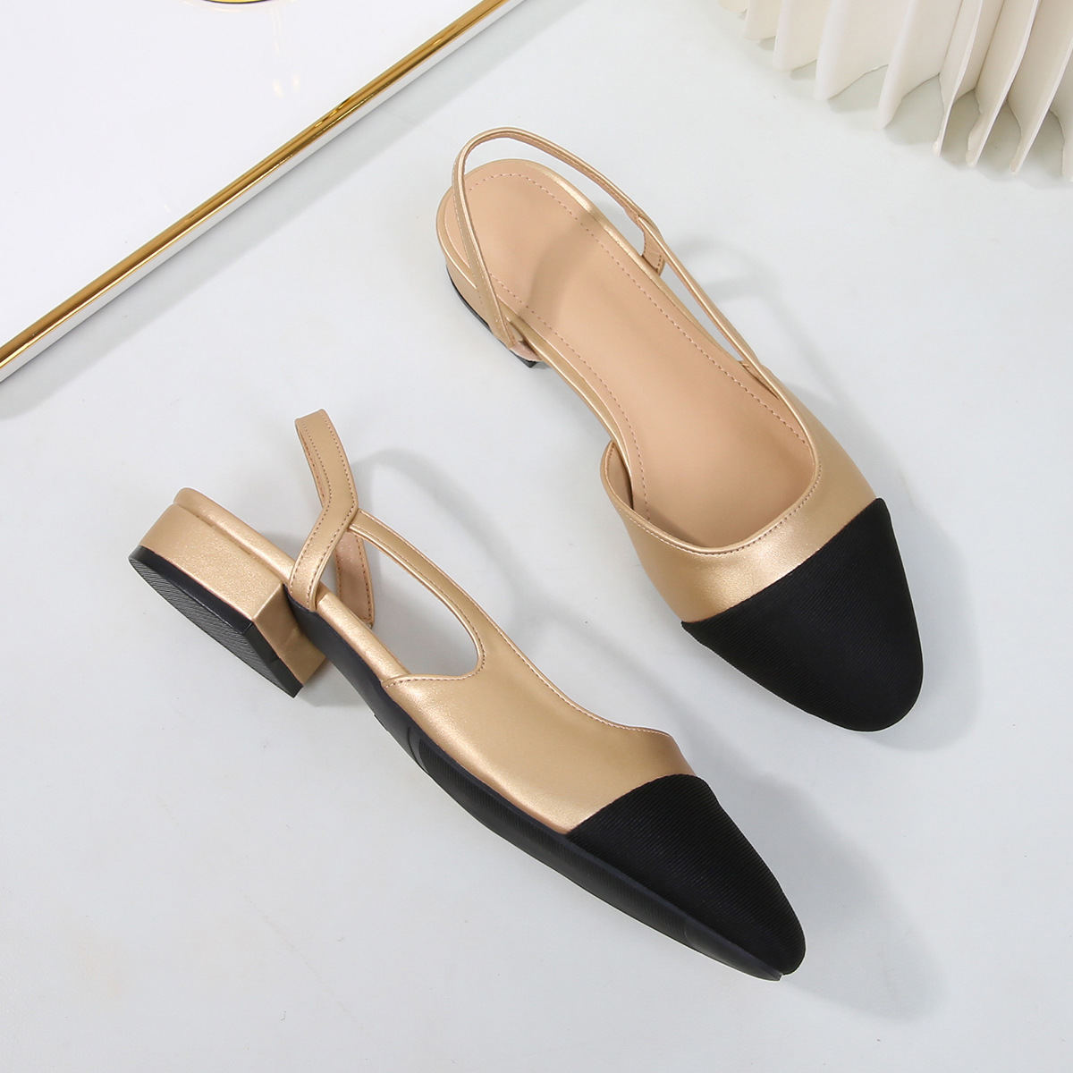 스팟 대외 무역 크로스보더 프렌치 두꺼운 굽 하이힐 컬러 블록 뒷부분 빈 발가락 샌들 대형 44 여성화 작은 향기로운 스타일 신발