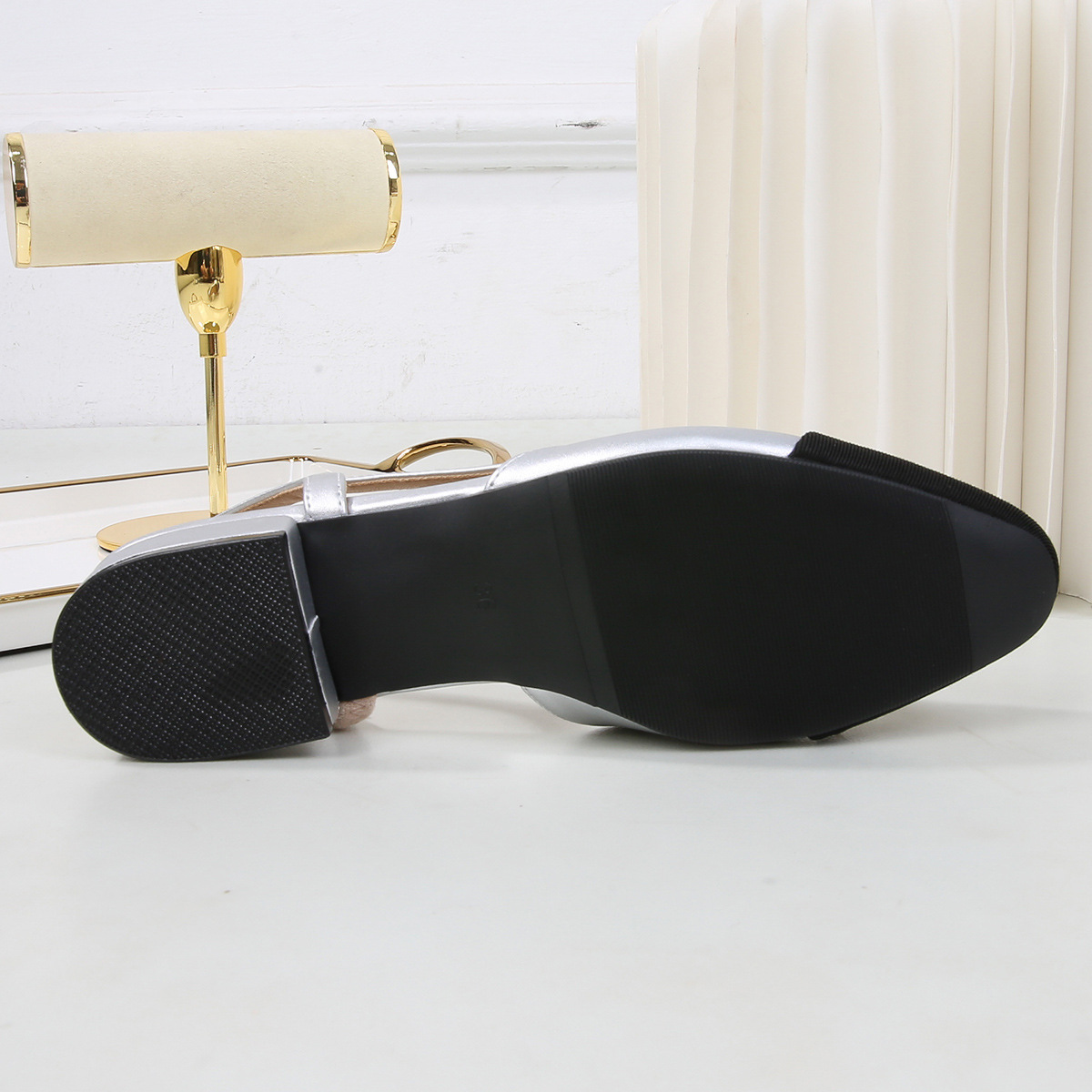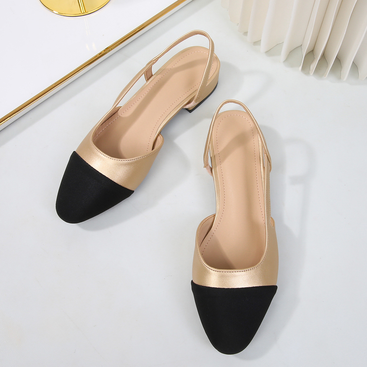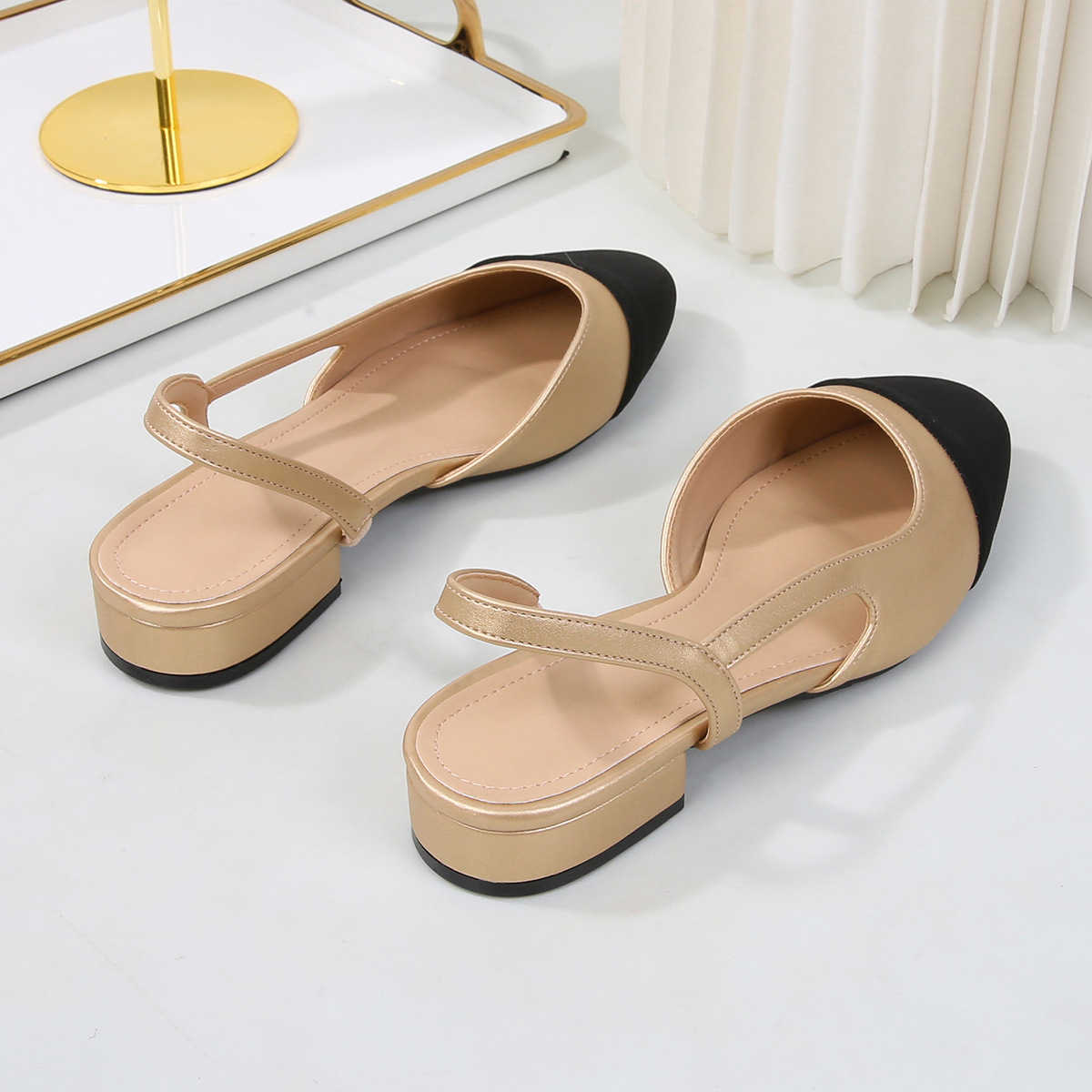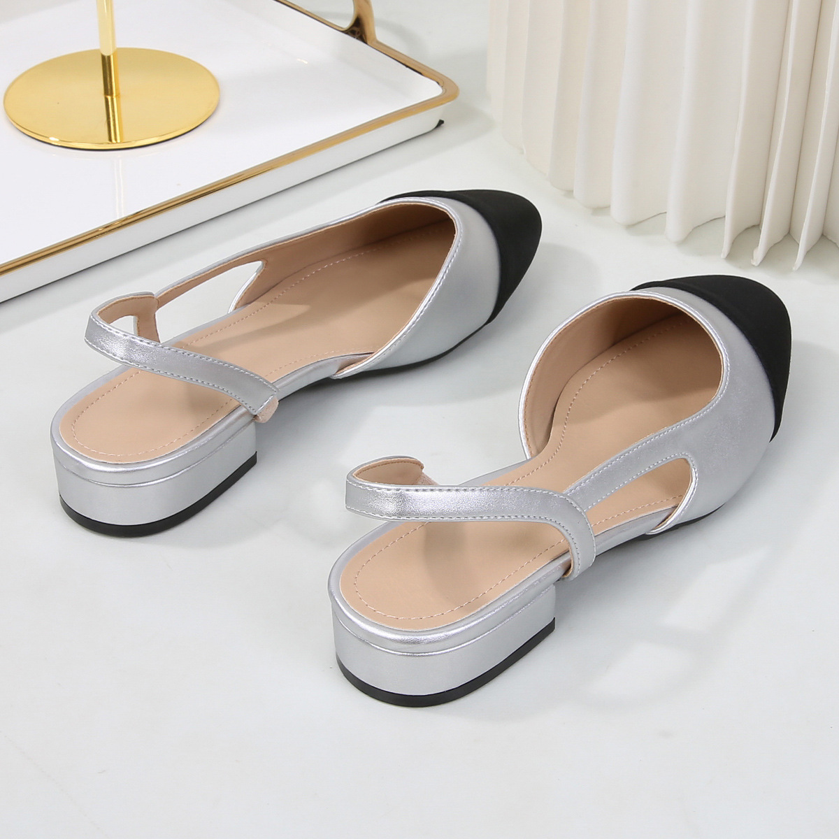 스팟 대외 무역 크로스보더 프렌치 두꺼운 굽 하이힐 컬러 블록 뒷부분 빈 발가락 샌들 대형 44 여성화 작은 향기로운 스타일 신발