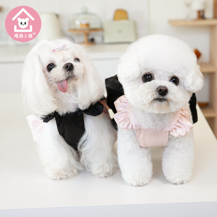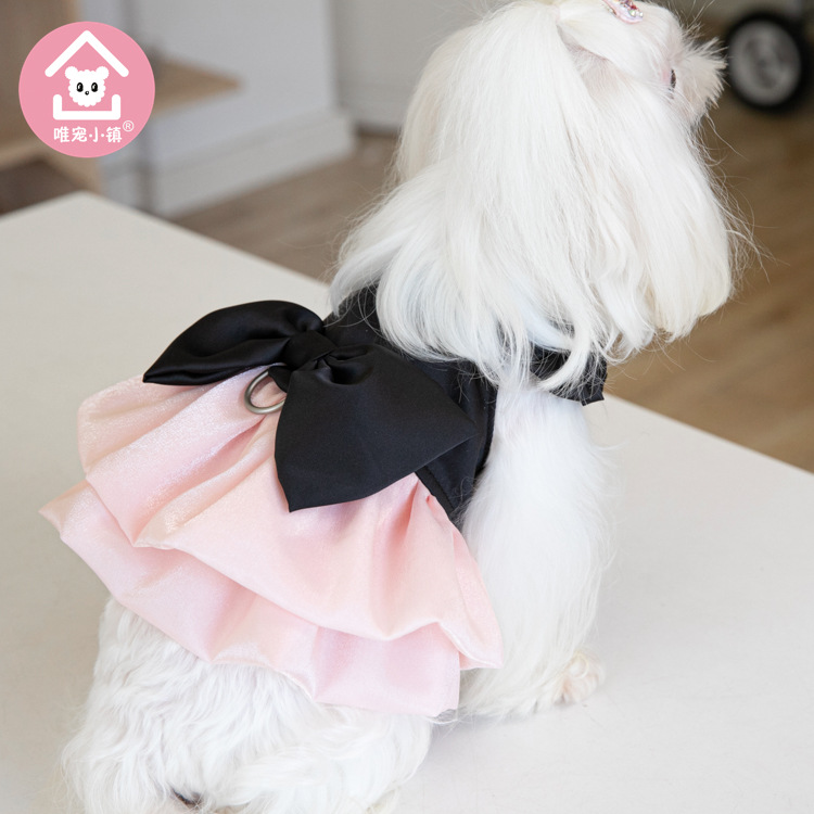 Weichet Town 애완 동물 고양이와 개 옷 여름 시원한 대비 색상 견인 테디 스커트 일본과 한국 패션 애완 동물 옷