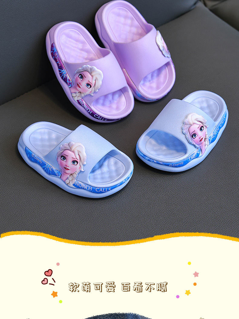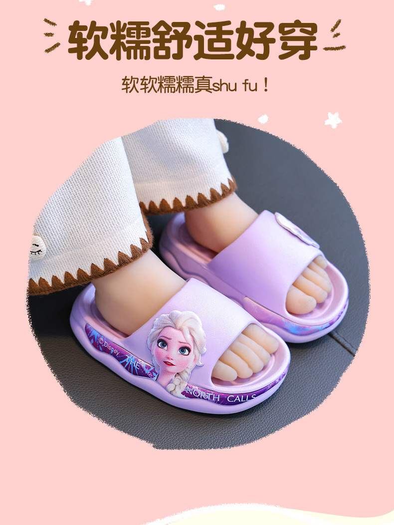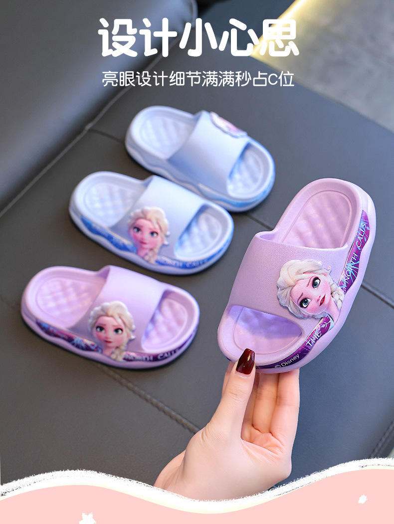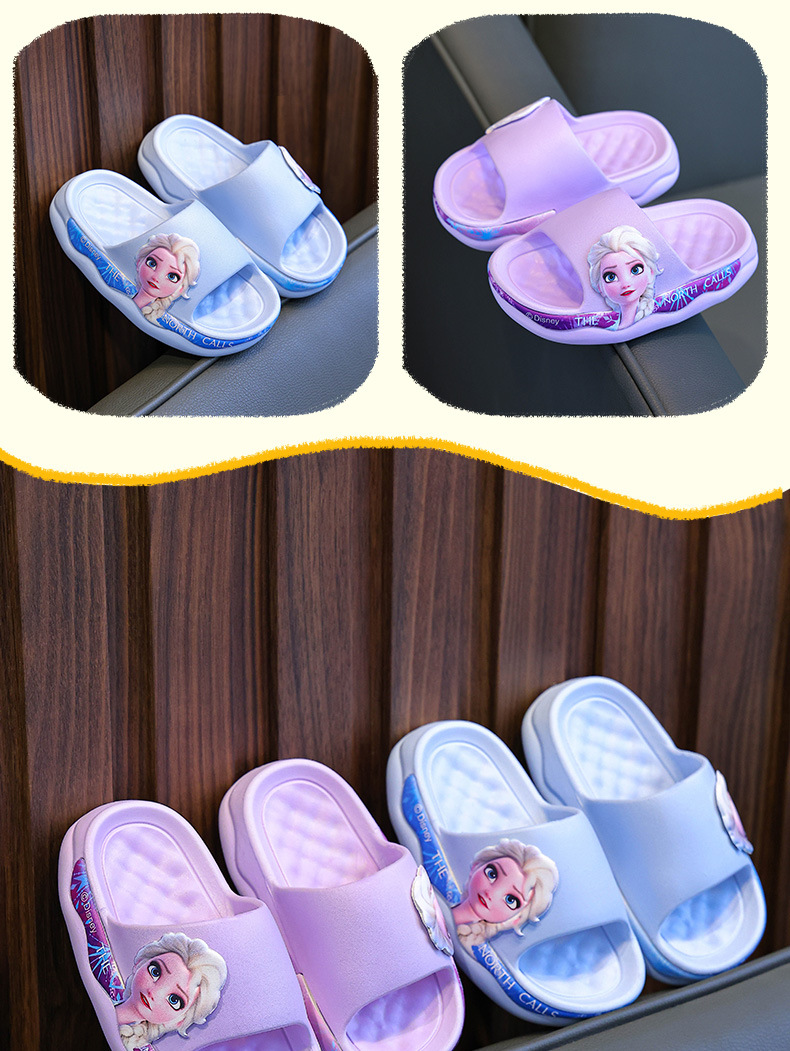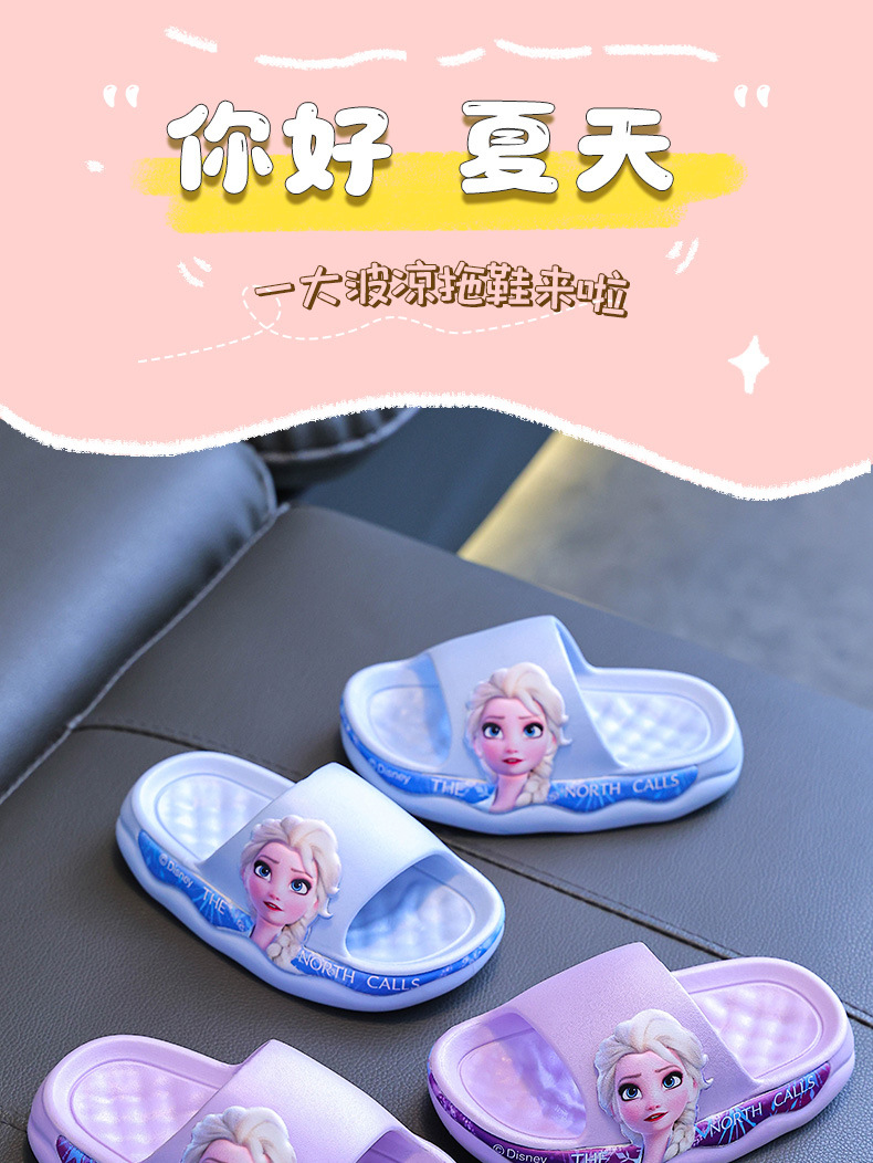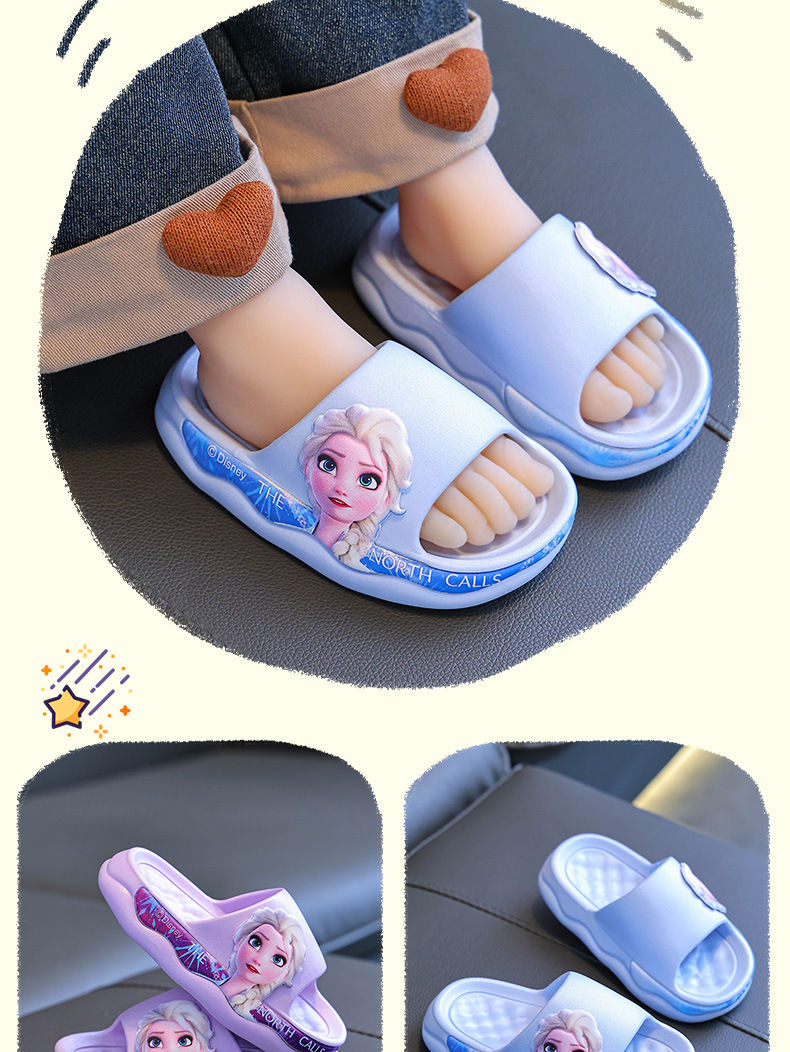 여름 소녀 샌들 미끄럼 방지 부드러운 바닥 공주 엘사 만화 실내 목욕 소녀 비치 샌들