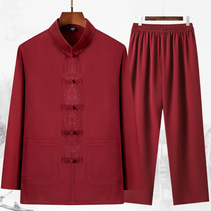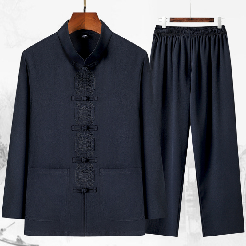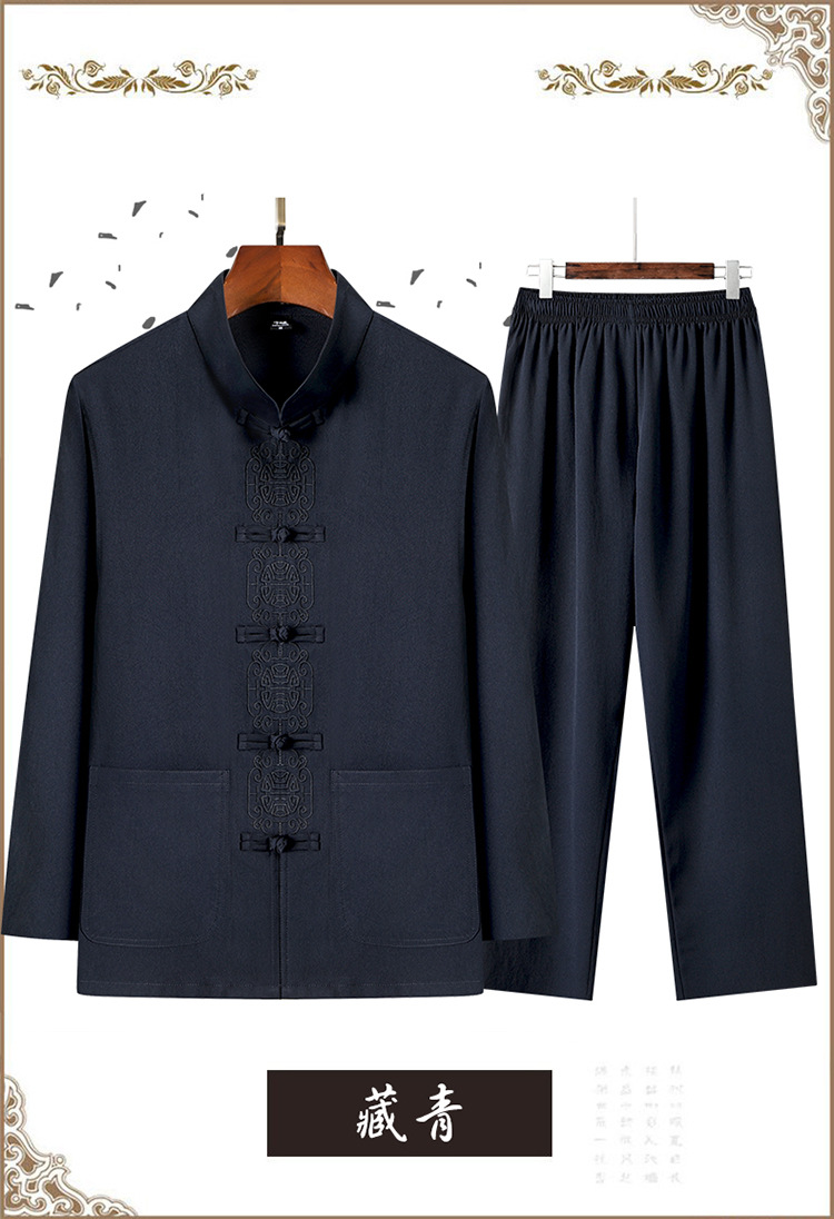 중노년 남성용 탕복 여름 정장, 중국풍 할아버지 얇은 루즈핏 중국풍 노인복 자수