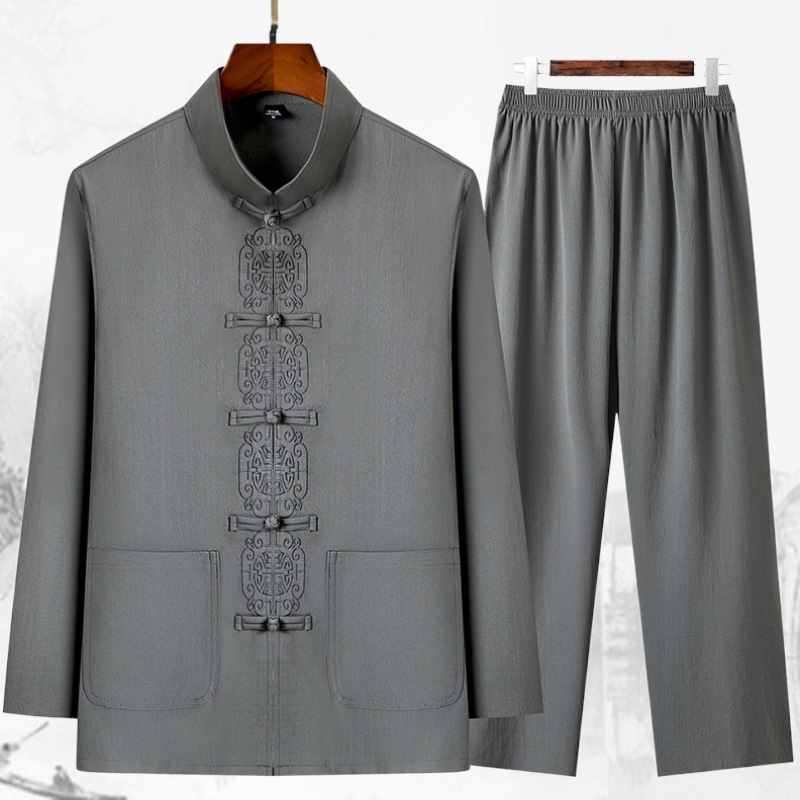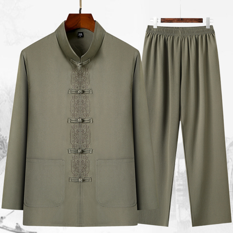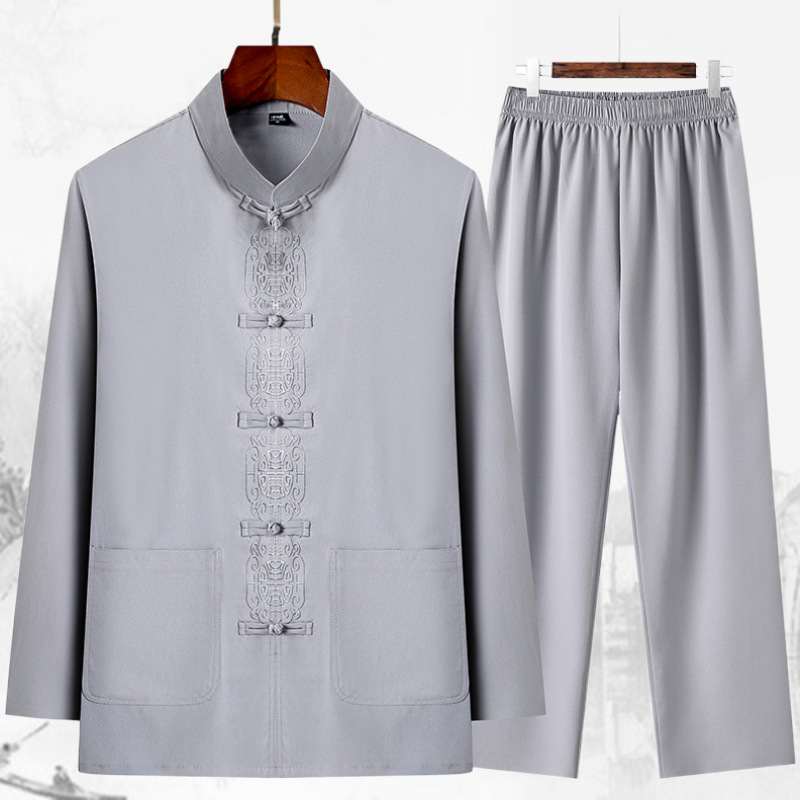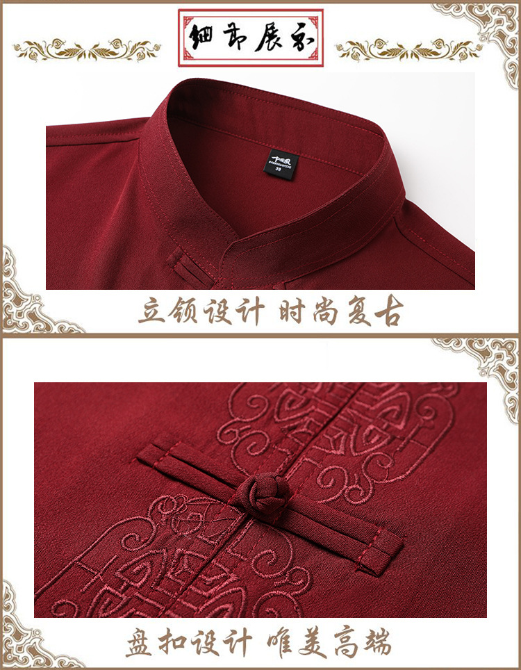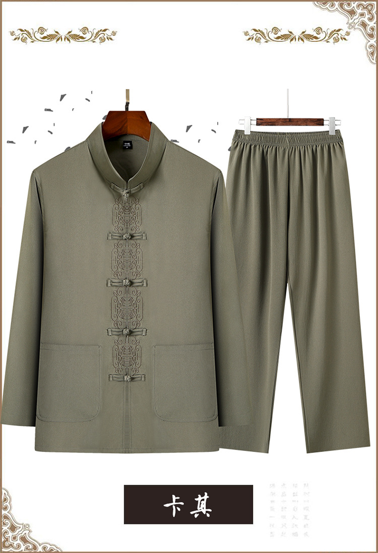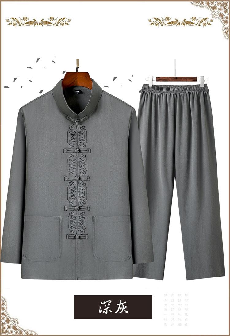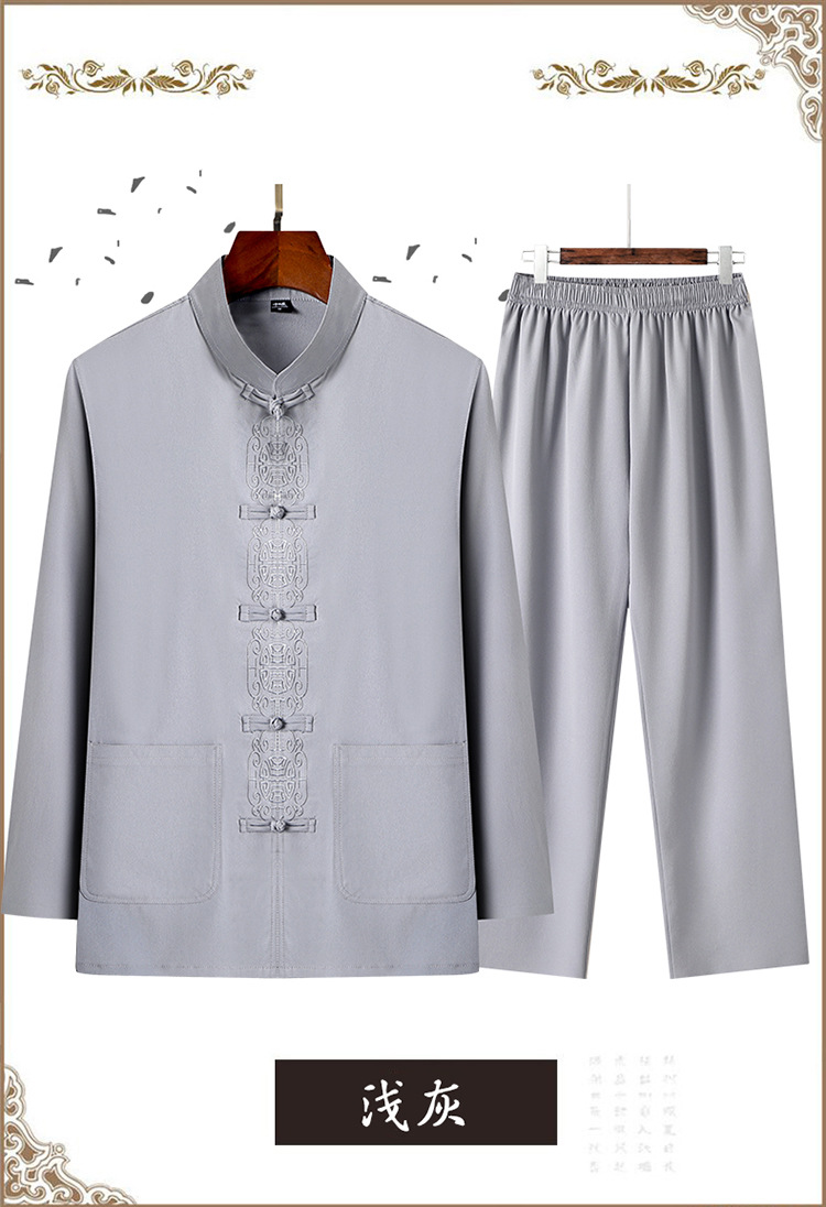 중노년 남성용 탕복 여름 정장, 중국풍 할아버지 얇은 루즈핏 중국풍 노인복 자수스토어 가기