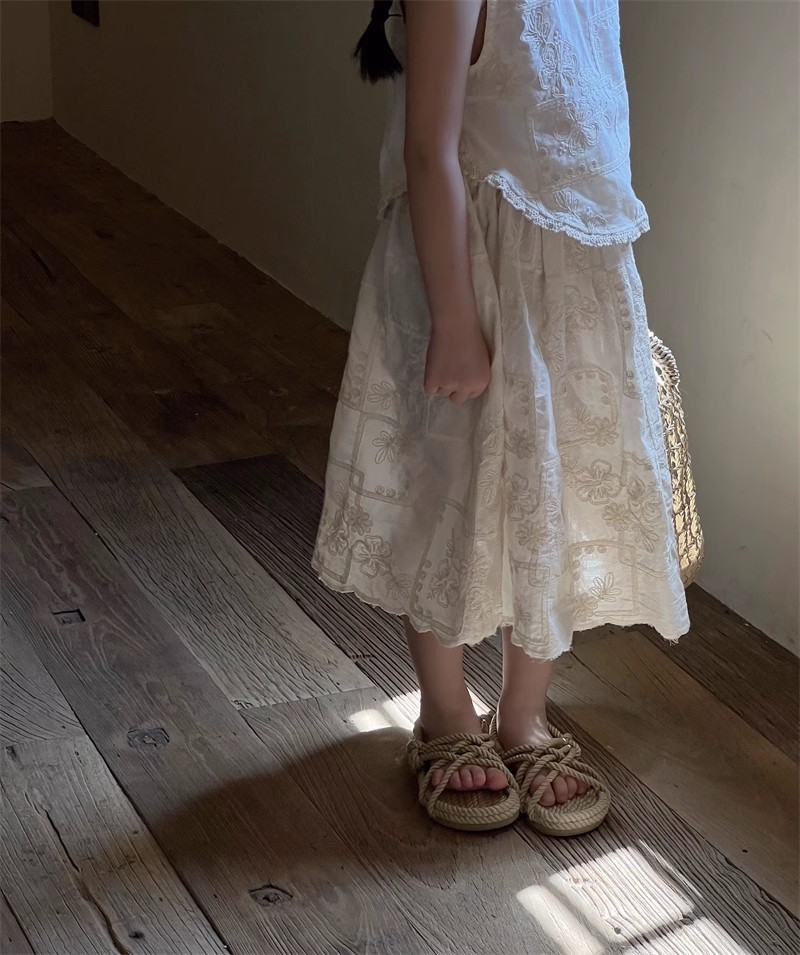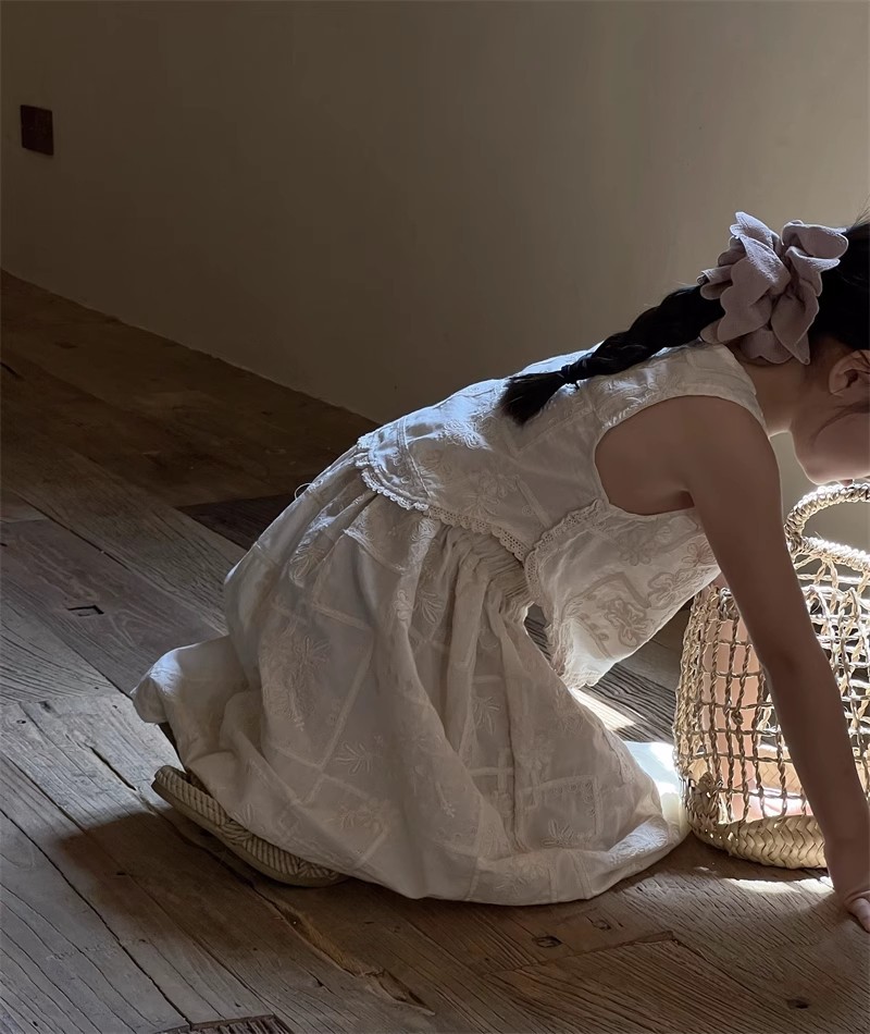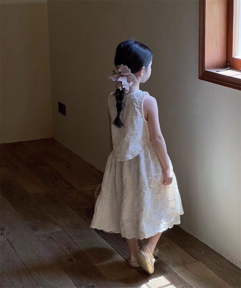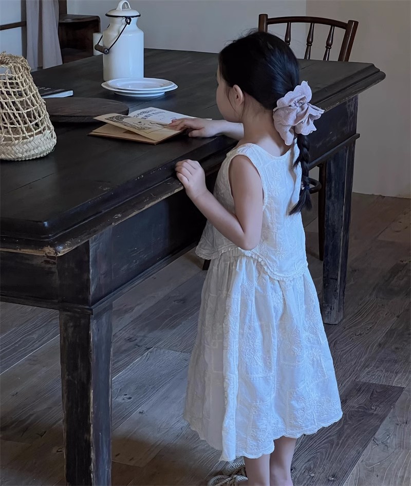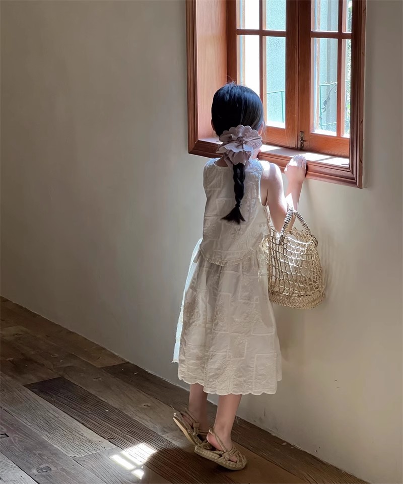 여아용 한국 자수 세트 반치마 2025 여름 의류 아동용 조끼 스커트 아기용 세련된 숲풍 여아 의류스토어 가기