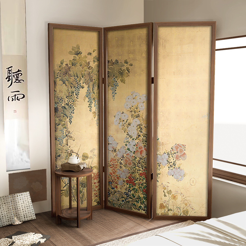 새로운 중국 복고풍 꽃과 잔디 화면 파티션 거실 접이식 모바일 차단 사무실 연구 장식 단단한 나무 접이식 스크린스토어 가기