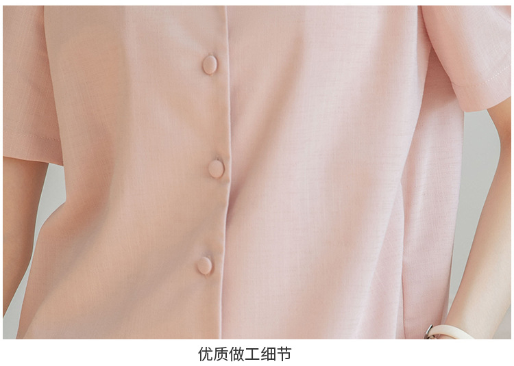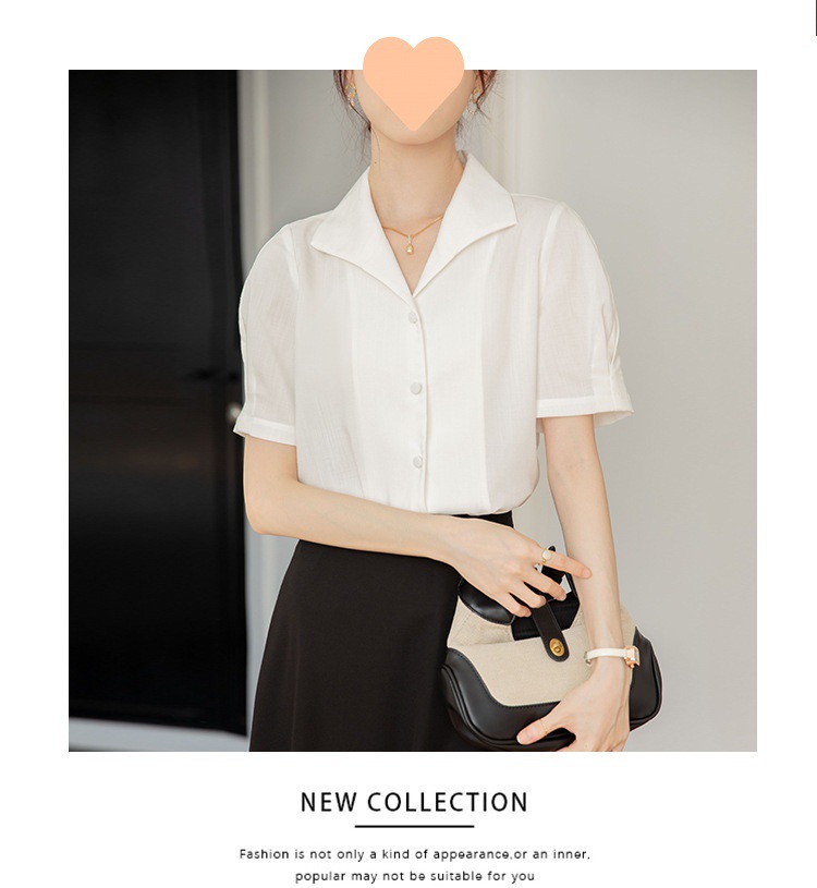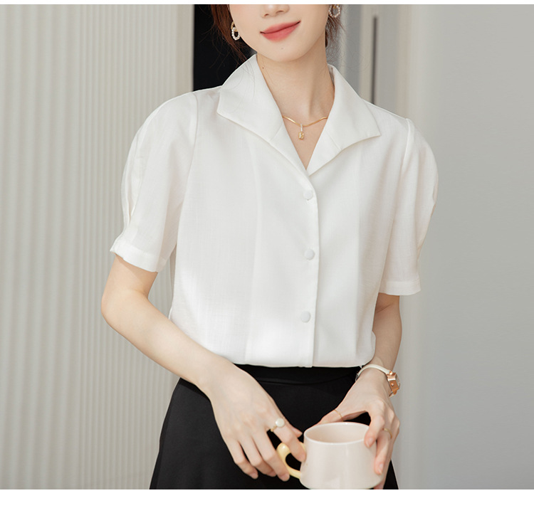 2024 진짜 샷 새로운 프랑스 복고풍 허리 타이트 셔츠 통근 간단한 패션 싱글 브레스트 V 넥 셔츠