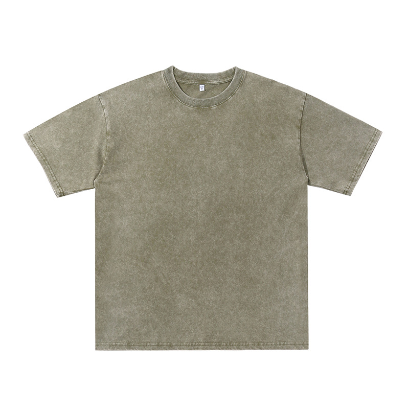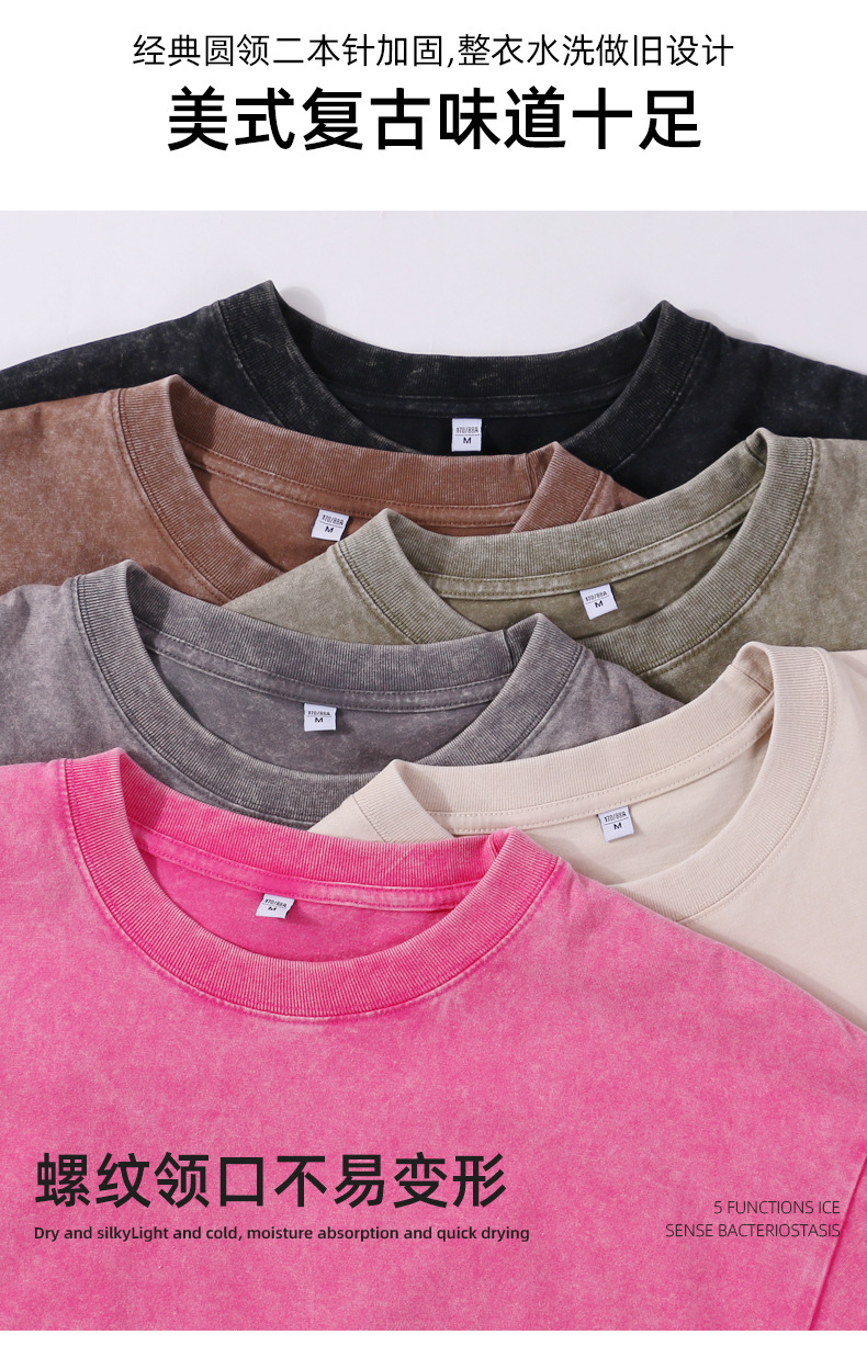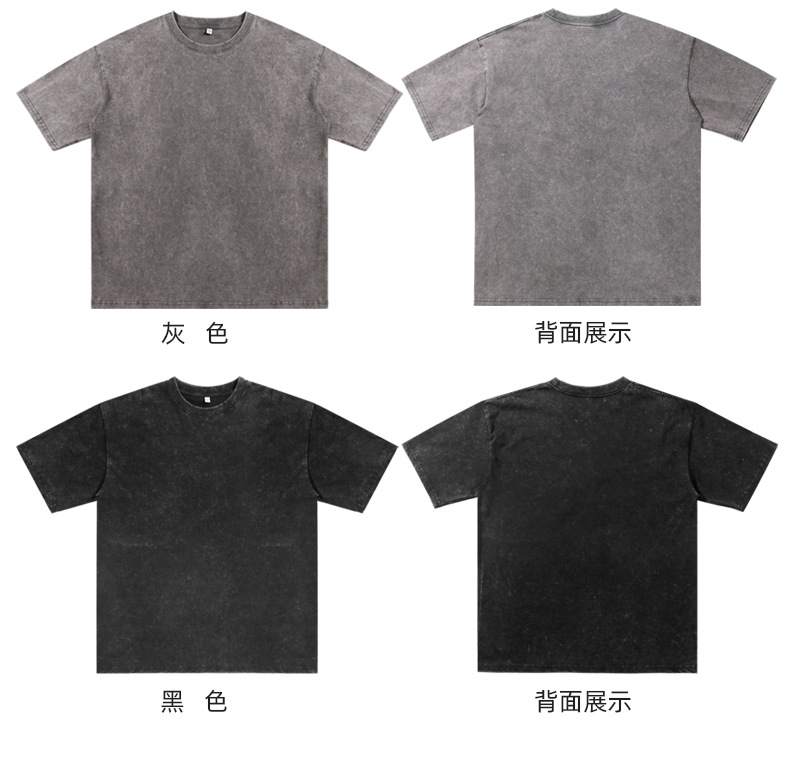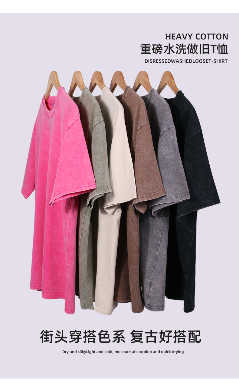 국경 헤비급 남성 티셔츠 대형 순수 코튼 반팔 남성 티셔츠 레트로 워시 올드 루즈 은 코튼 티셔츠스토어 가기