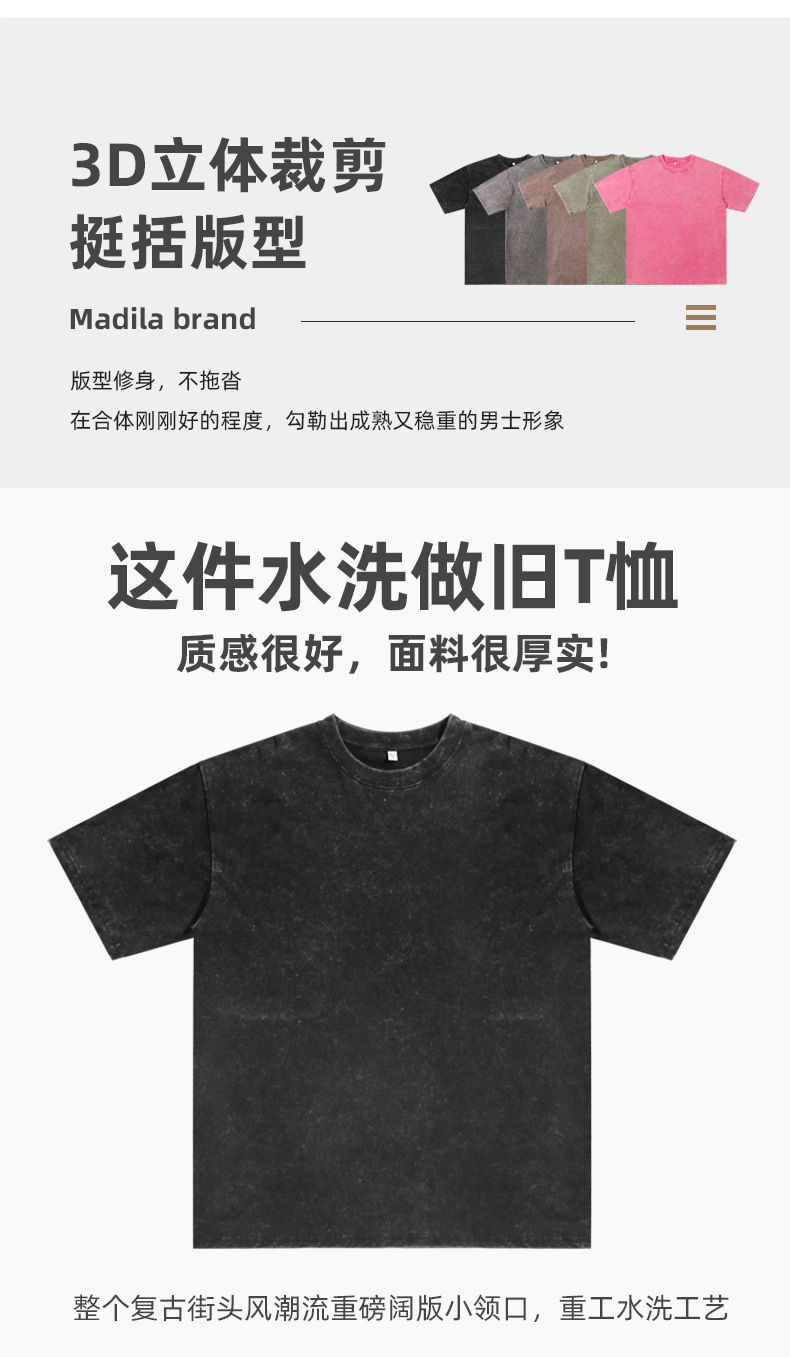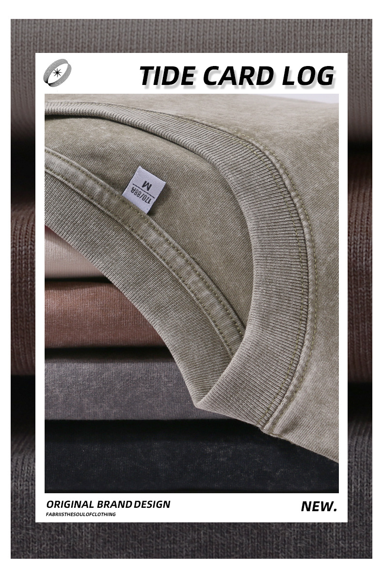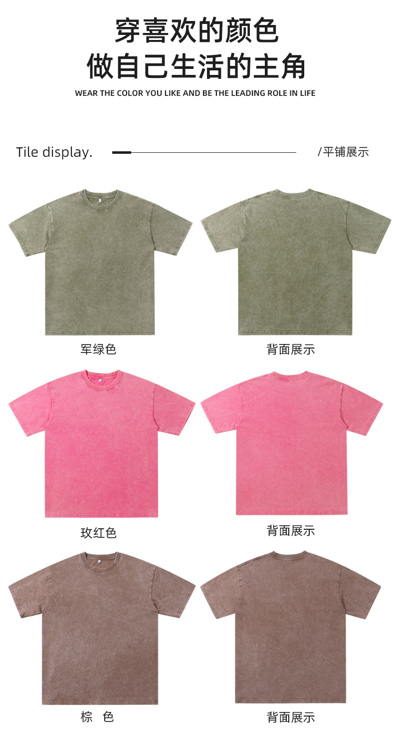 국경 헤비급 남성 티셔츠 대형 순수 코튼 반팔 남성 티셔츠 레트로 워시 올드 루즈 은 코튼 티셔츠스토어 가기