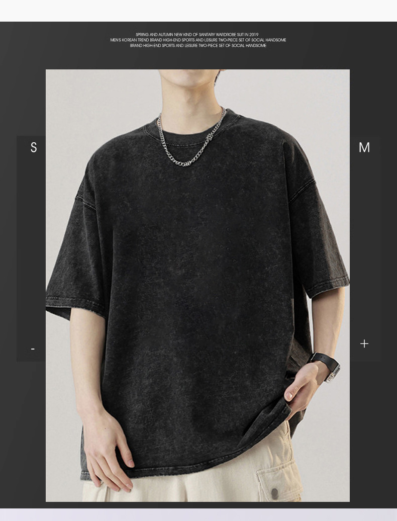 국경 헤비급 남성 티셔츠 대형 순수 코튼 반팔 남성 티셔츠 레트로 워시 올드 루즈 은 코튼 티셔츠