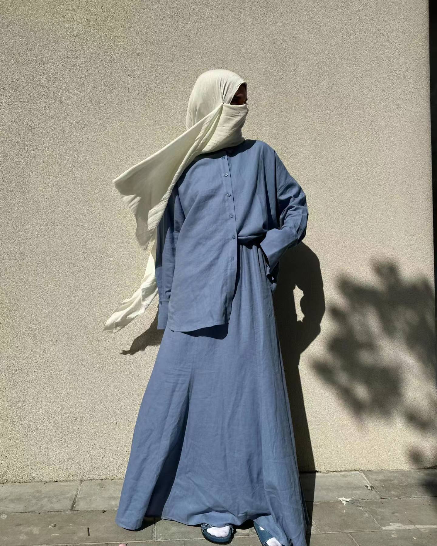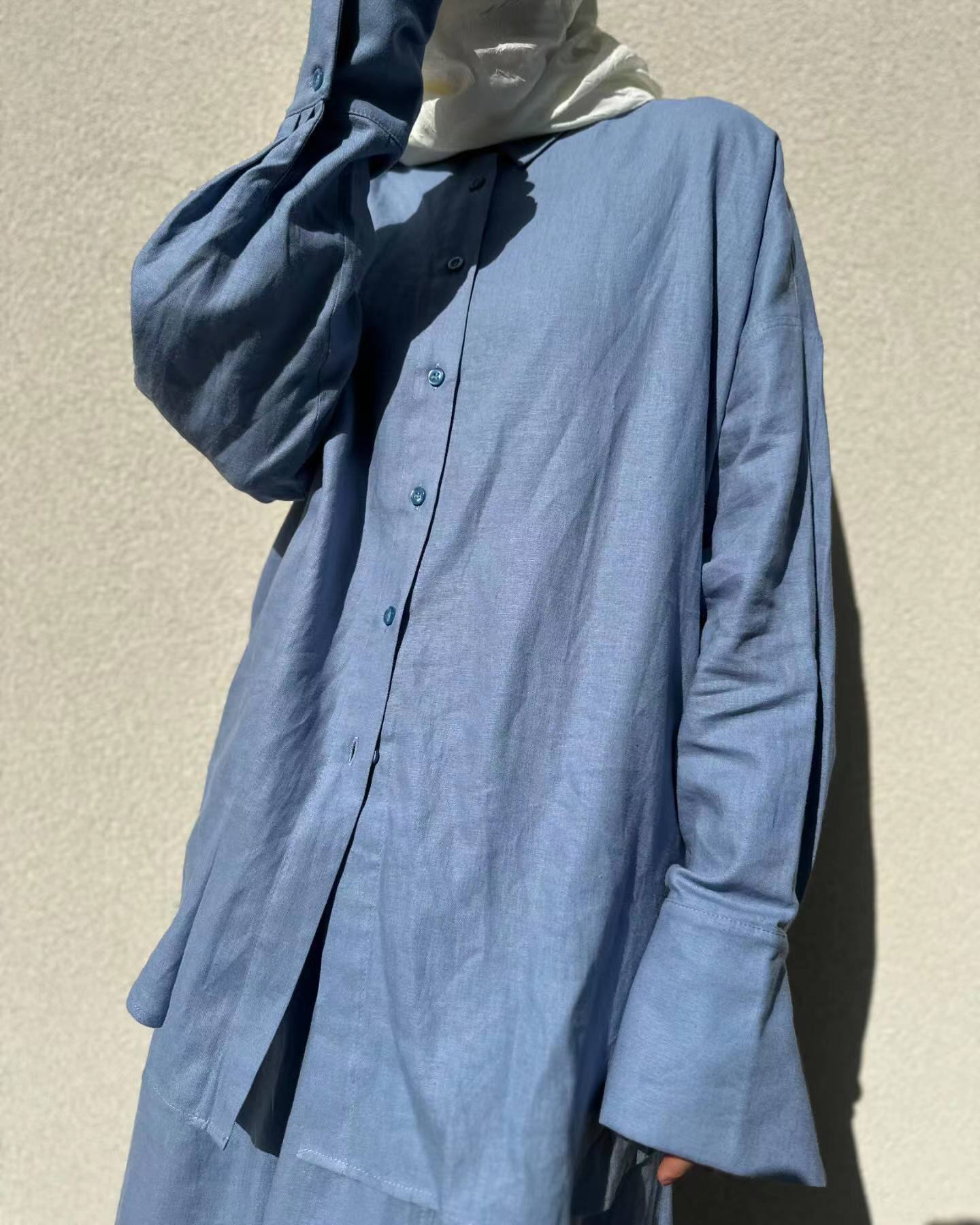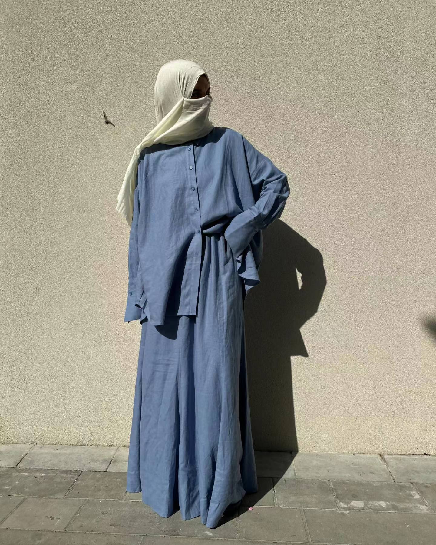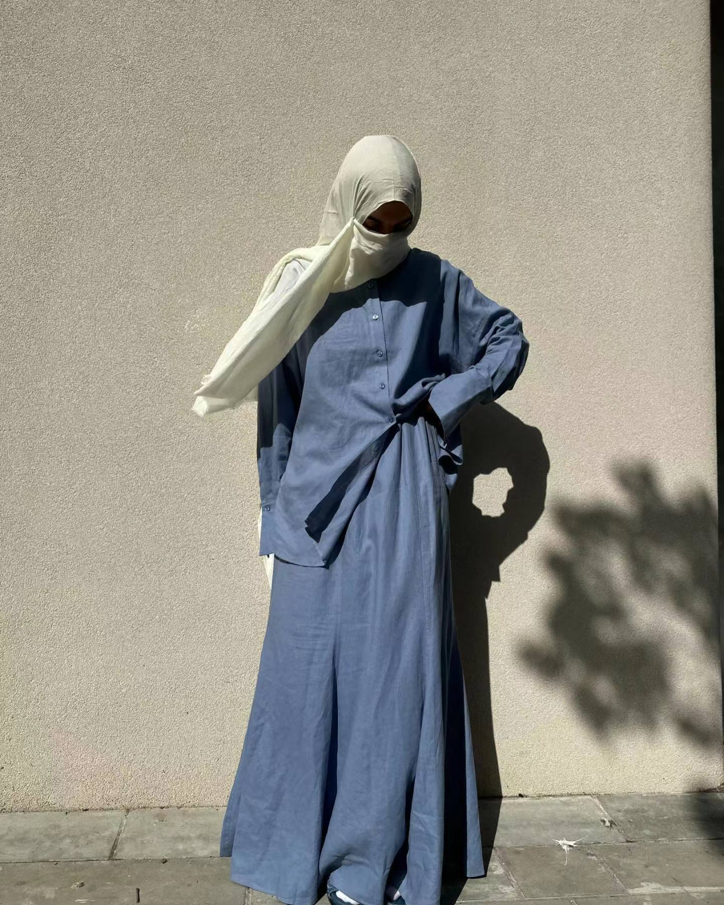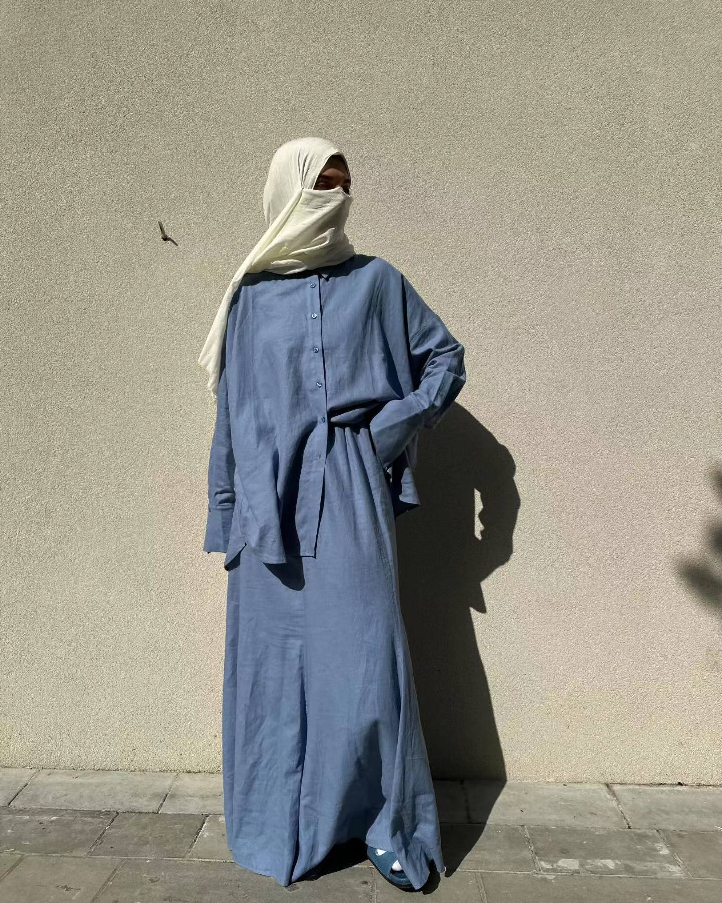 2024년 봄 여성 무슬림 의류 세트, 루즈핏 긴팔 셔츠와 스커트, 우아한 스타일, 해외 인기 상품스토어 가기