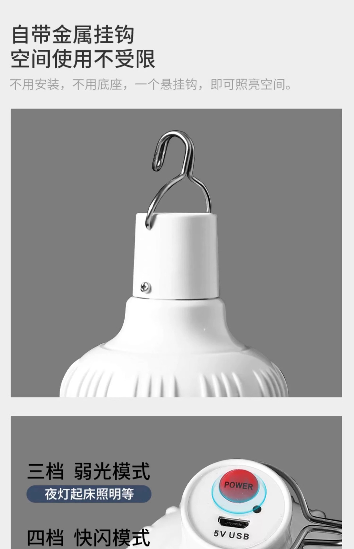 LED 충전식 전구 슈퍼 밝은 야시장 실속 조명 실속 조명 데스크탑 클립 조명 매달린 조명 충전식 LED 전구