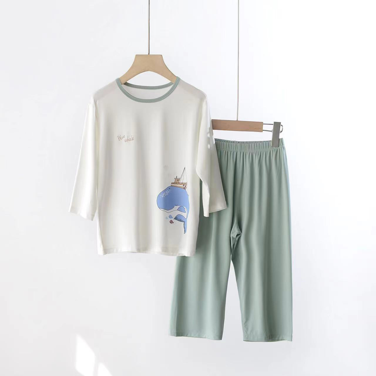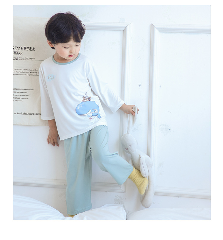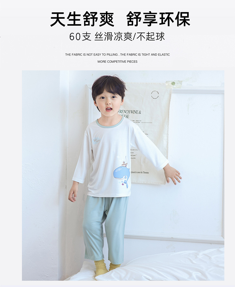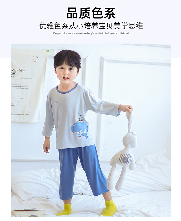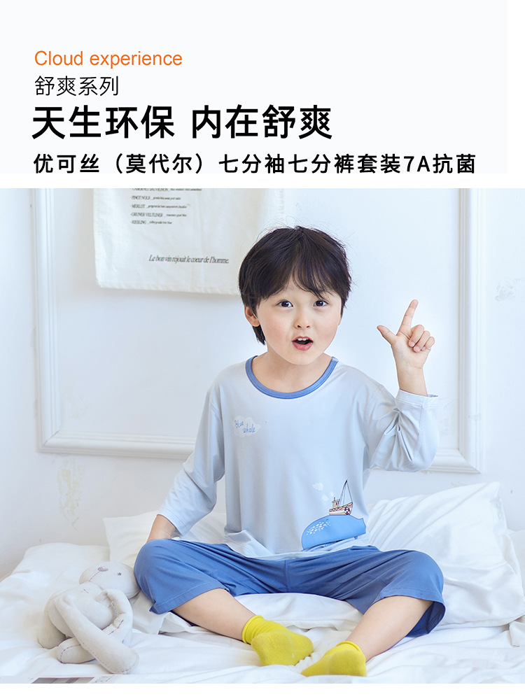 여름 모달 소년 잠옷 실크 얇은 3/4 소매 어린이 가정복 세트 가을 옷 긴 바지 클래스 A스토어 가기
