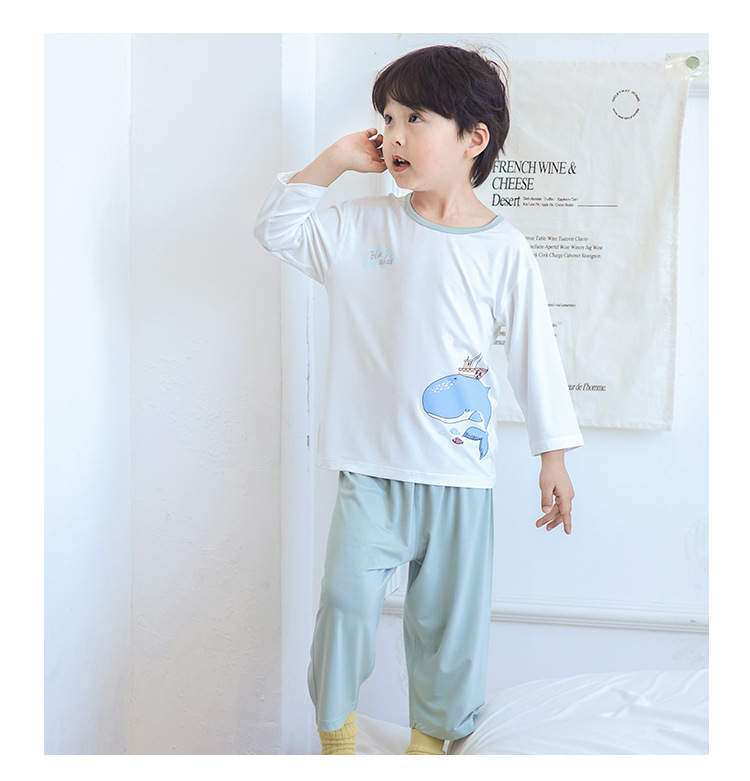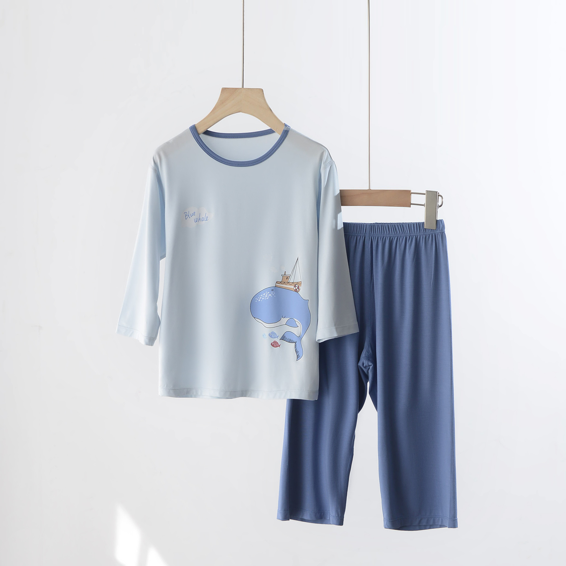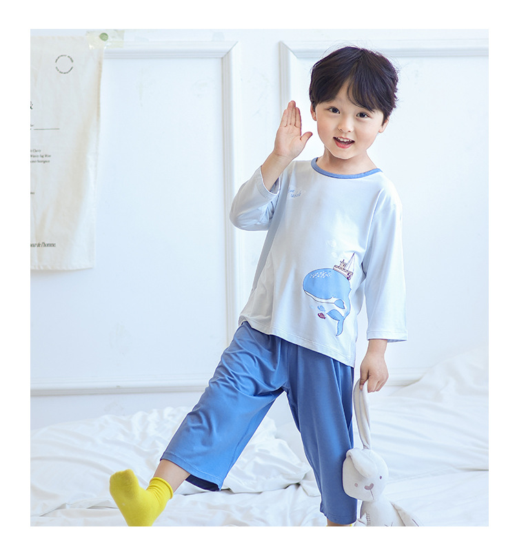 여름 모달 소년 잠옷 실크 얇은 3/4 소매 어린이 가정복 세트 가을 옷 긴 바지 클래스 A