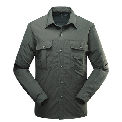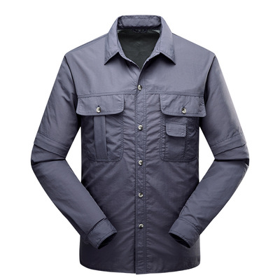 빠른 건조 옷 바지 세트 남성 긴팔 2 섹션 탈착식 작업복 야외 외출 등산 캠핑 낚시 옷 여름